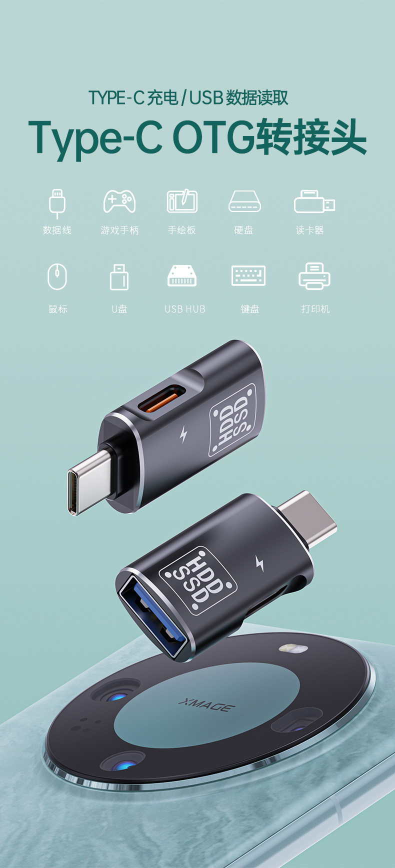 • 녹색 TYPE-C 인터페이스 [USB + 애플 충전 + TC 다기능] 외장 하드 리더기