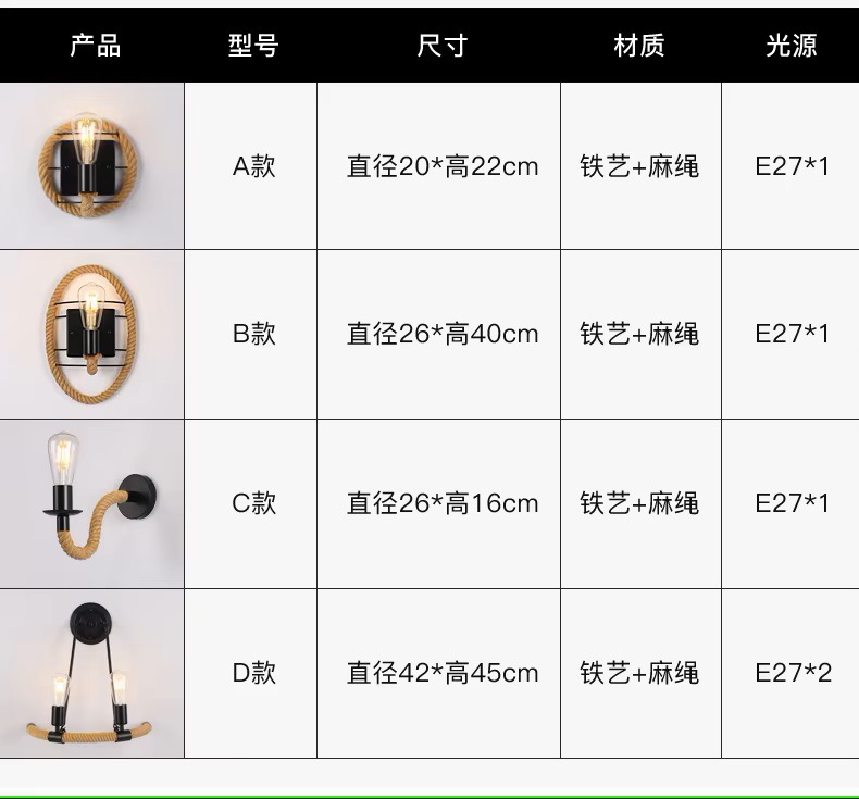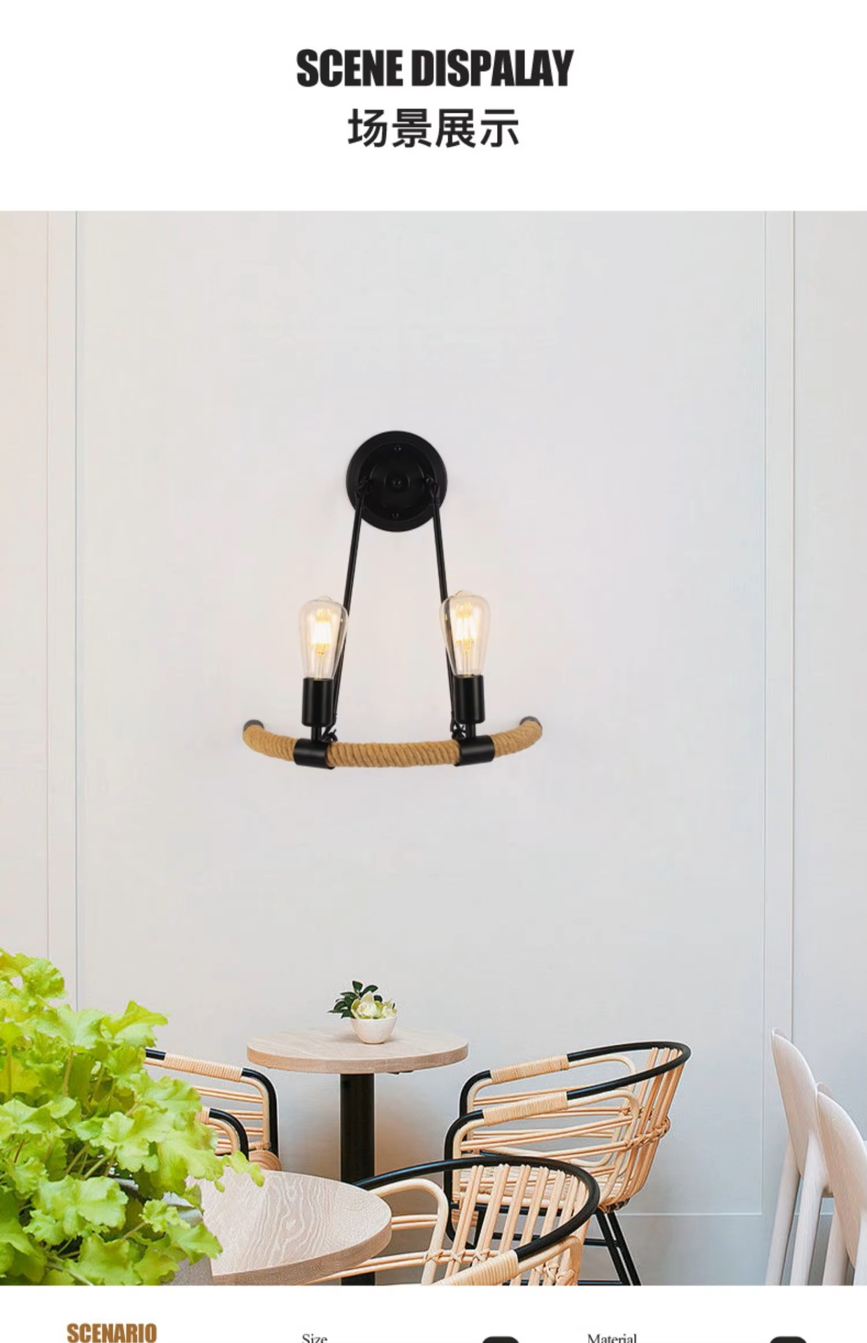 철제 샹들리에, 미국식 끈 벽등, 레트로 인더스트리얼 스타일, 레스토랑, 커피숍, 바, 복도용 LED 조명, 실내용스토어 가기