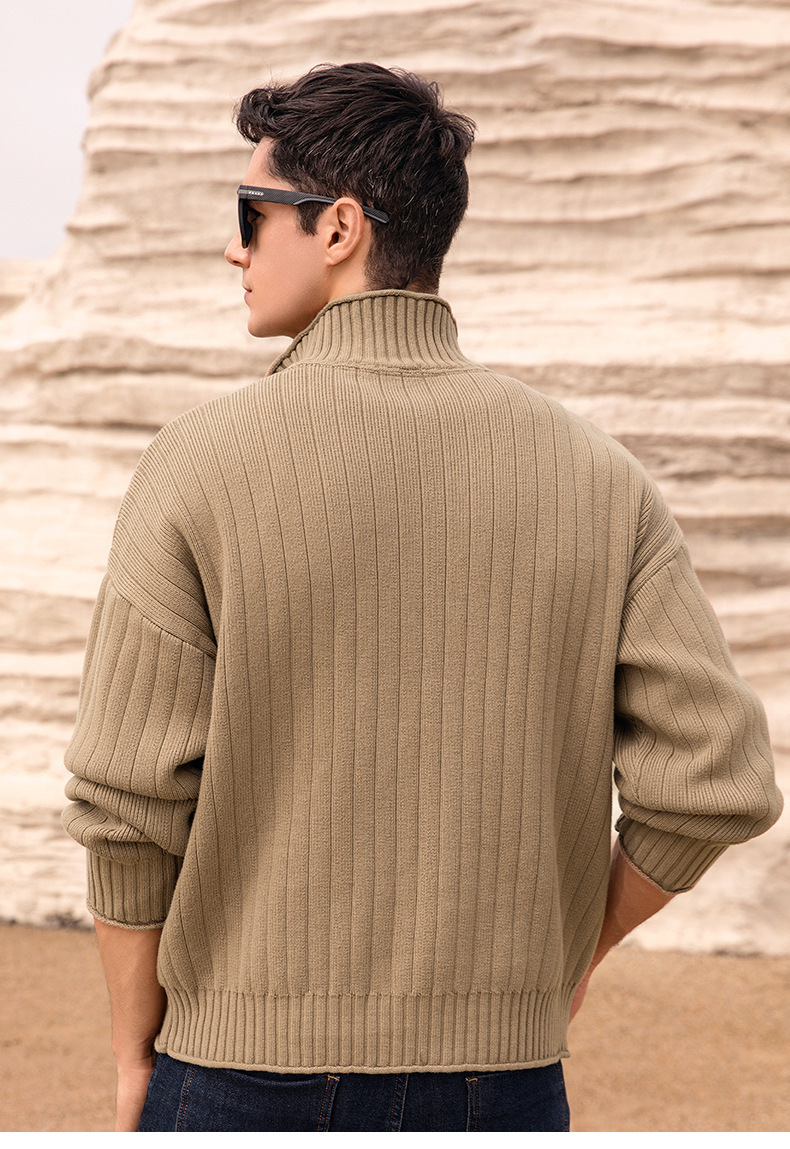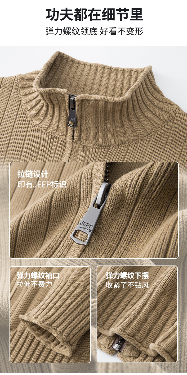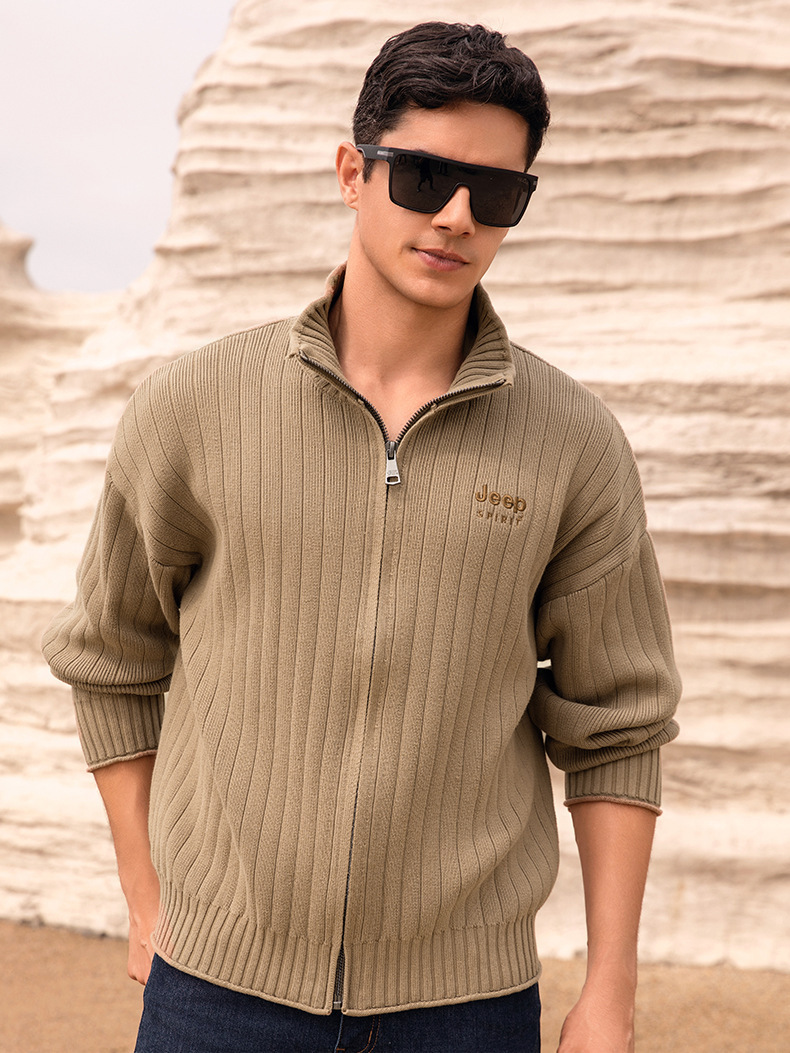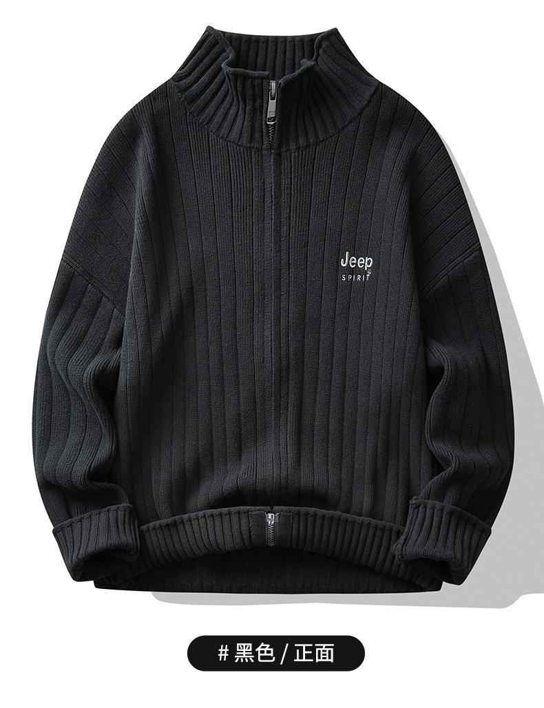 JEEP SPIRIT 니트 카디건 남성 가을 및 겨울 스탠드 칼라 단색 올 매치 옷깃 스웨터 코트 남성 패션