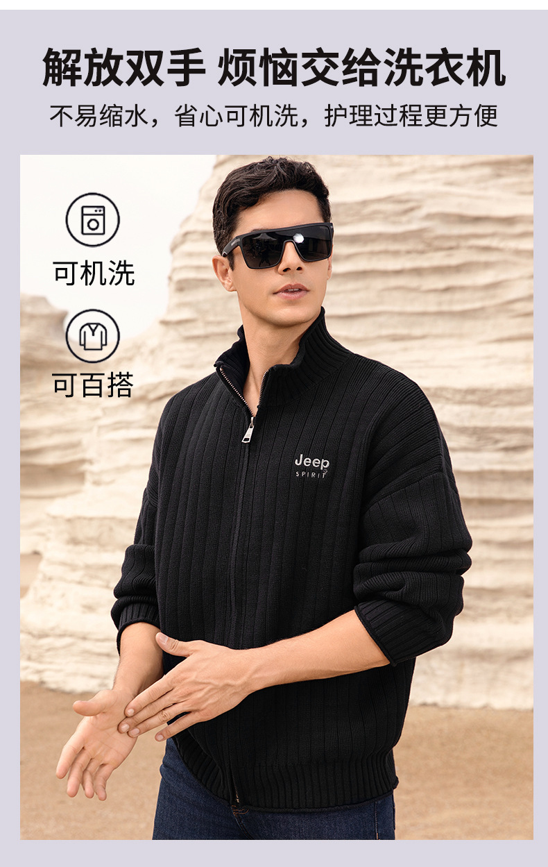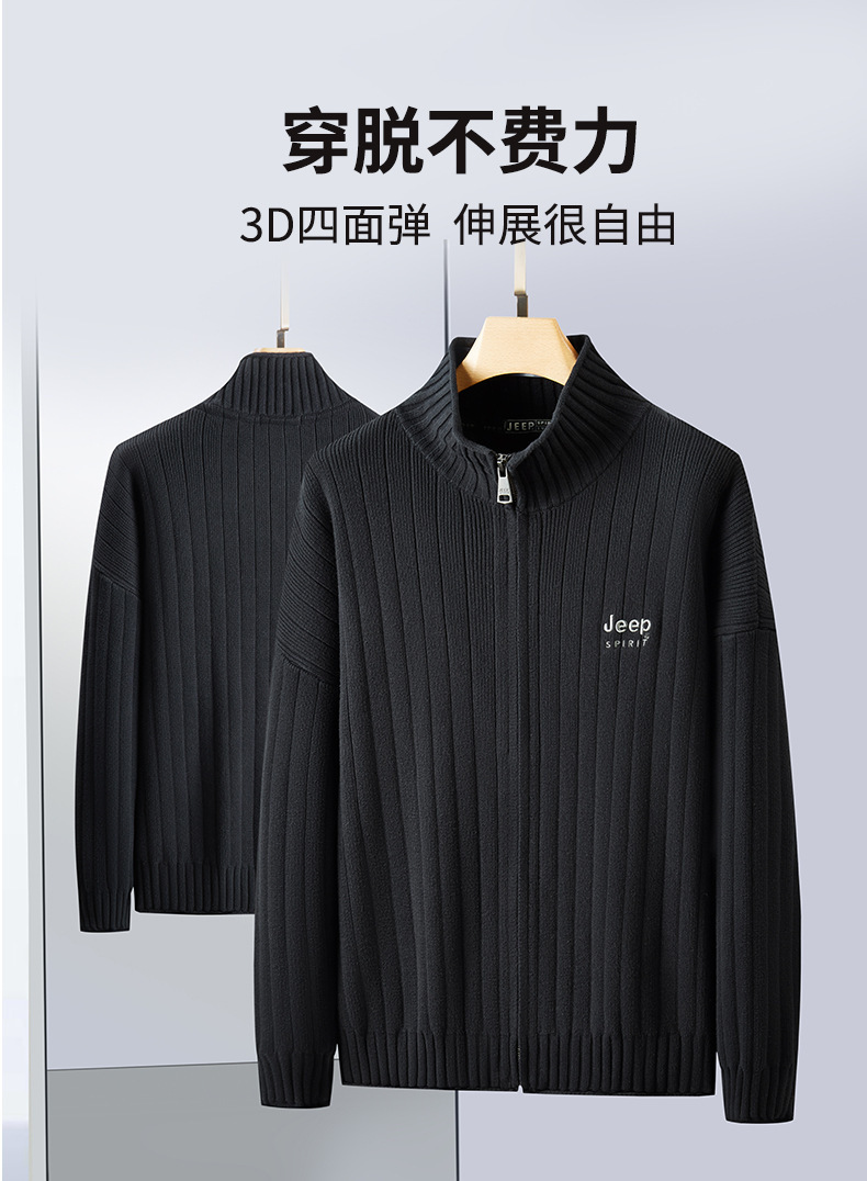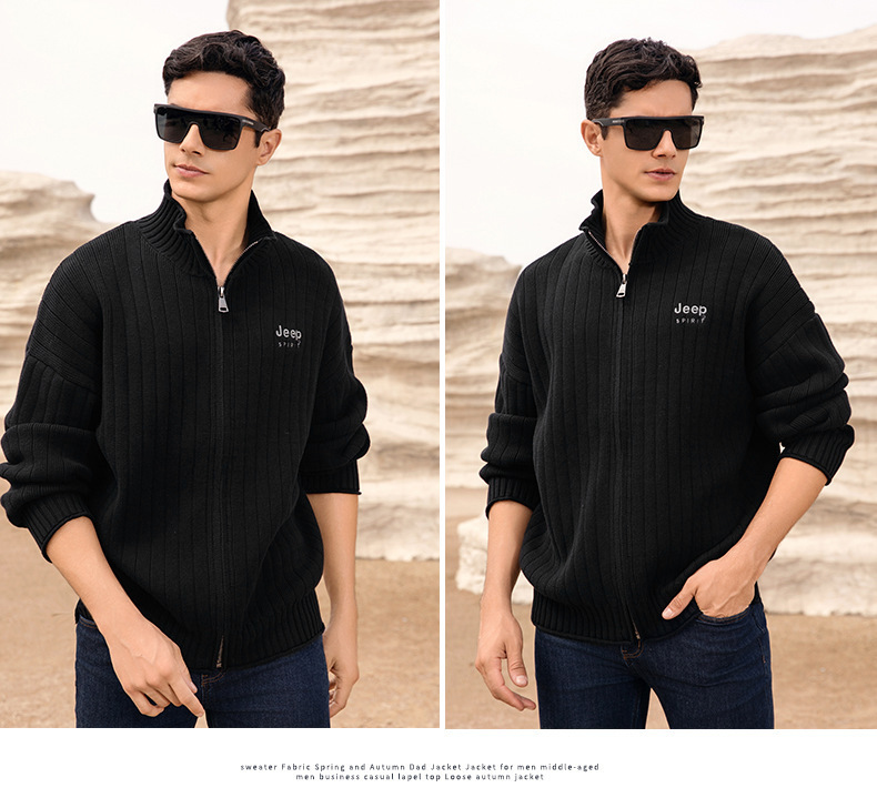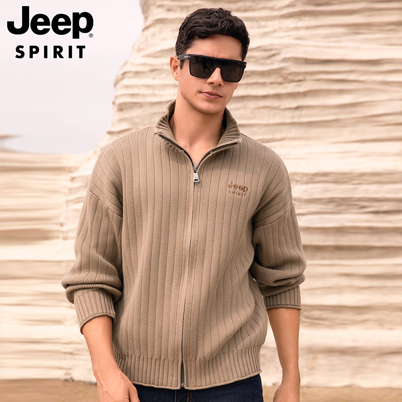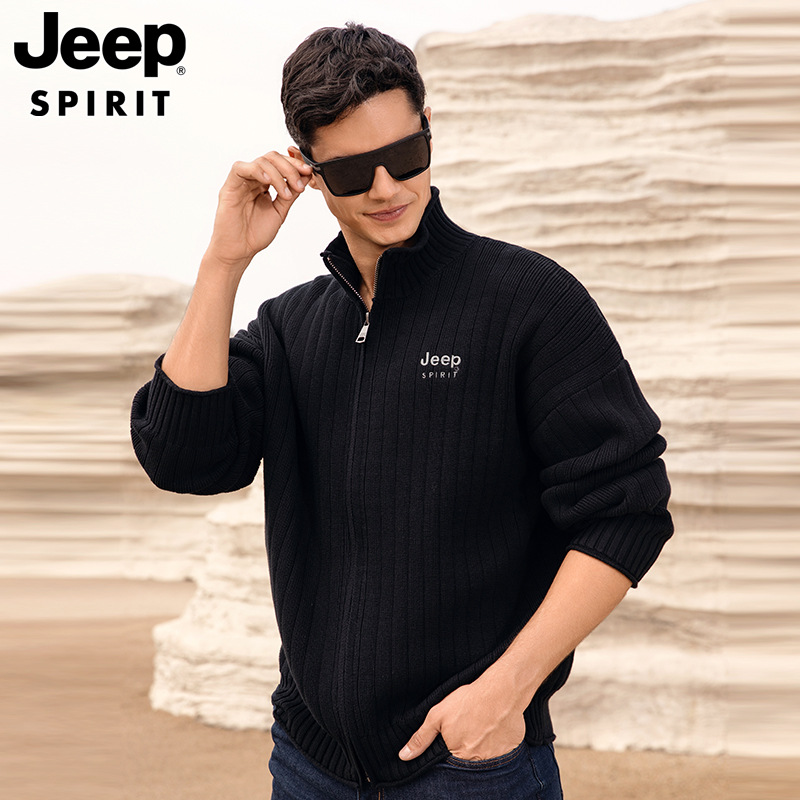 JEEP SPIRIT 니트 카디건 남성 가을 및 겨울 스탠드 칼라 단색 올 매치 옷깃 스웨터 코트 남성 패션스토어 가기