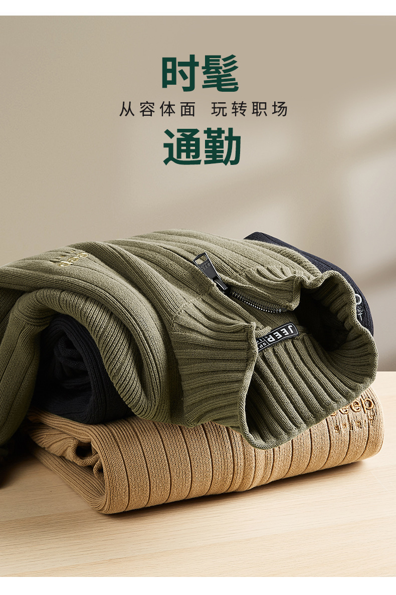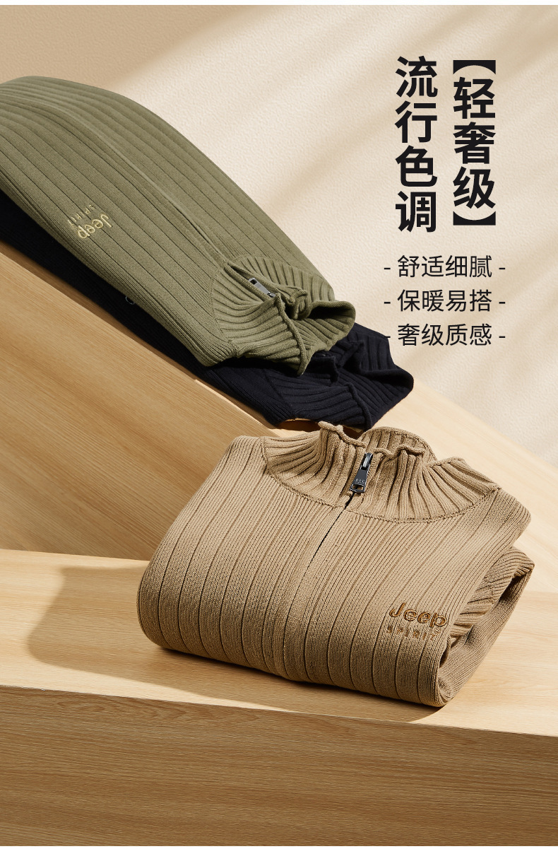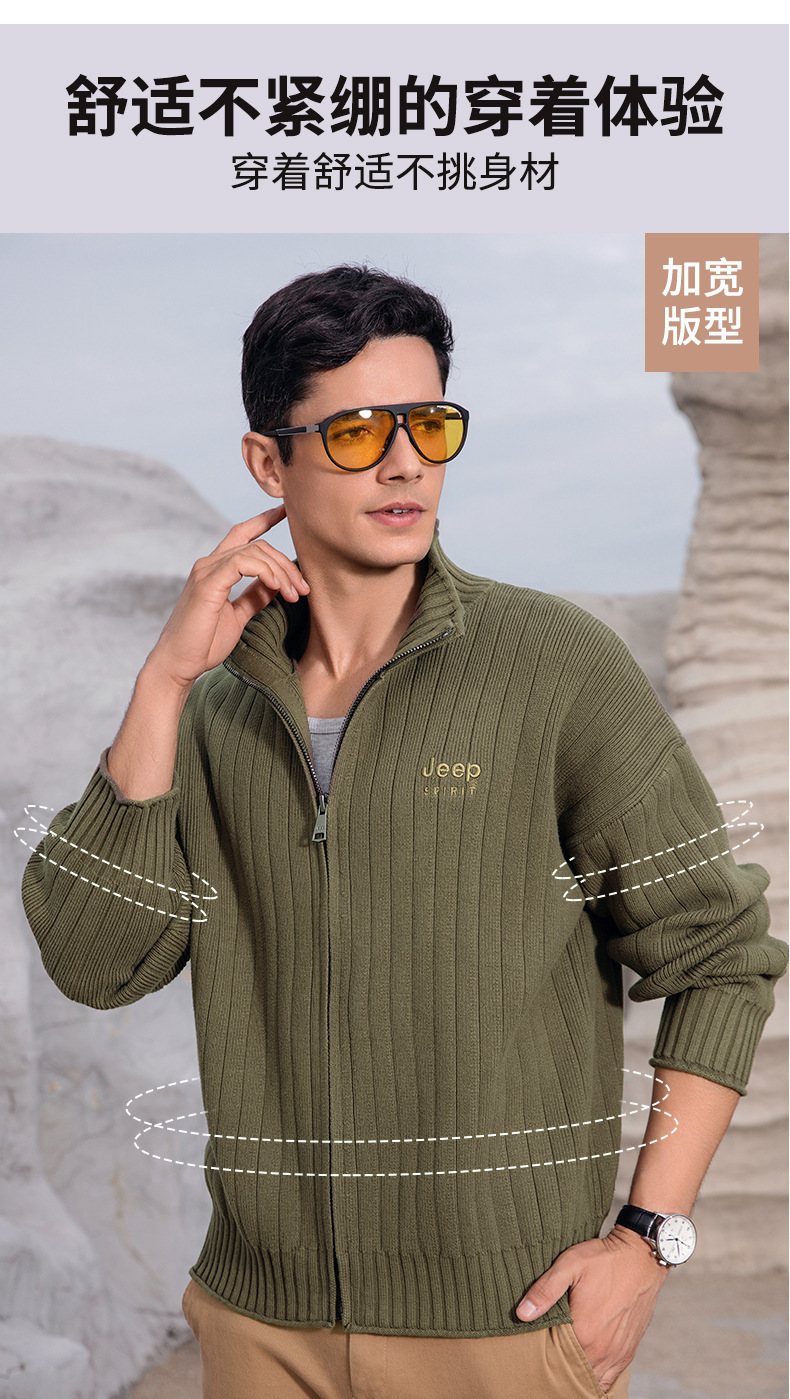 JEEP SPIRIT 니트 카디건 남성 가을 및 겨울 스탠드 칼라 단색 올 매치 옷깃 스웨터 코트 남성 패션스토어 가기