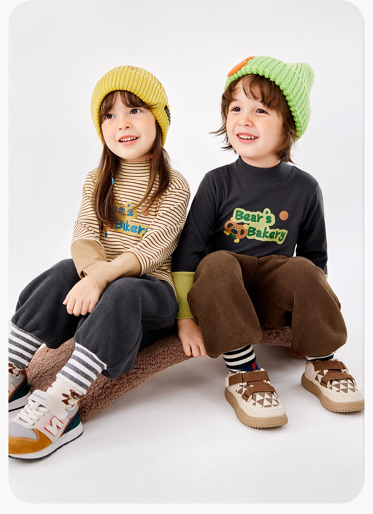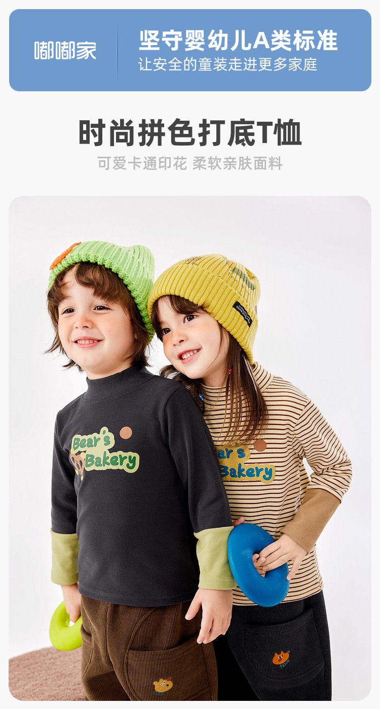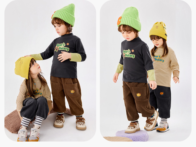 두두 가족 소년 반 높은 칼라 베이스 셔츠 겨울 착용 소녀 만화 긴 소매 티셔츠 가을과 겨울 어린이 최고 아동복 패션스토어 가기