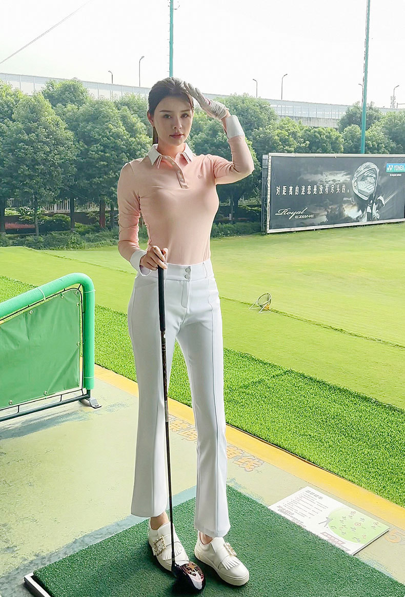 골프 세트 여자 봄과 가을 높은 허리 슬림 핏 슬림 핏 스키니 바지 스포츠 빠른 건조 화이트 벨리 리프팅 바지