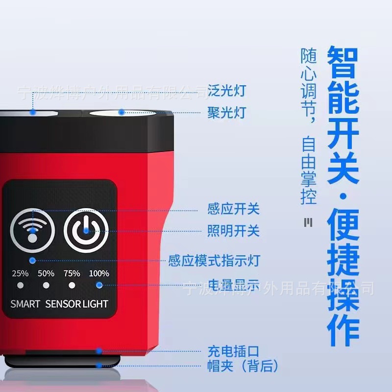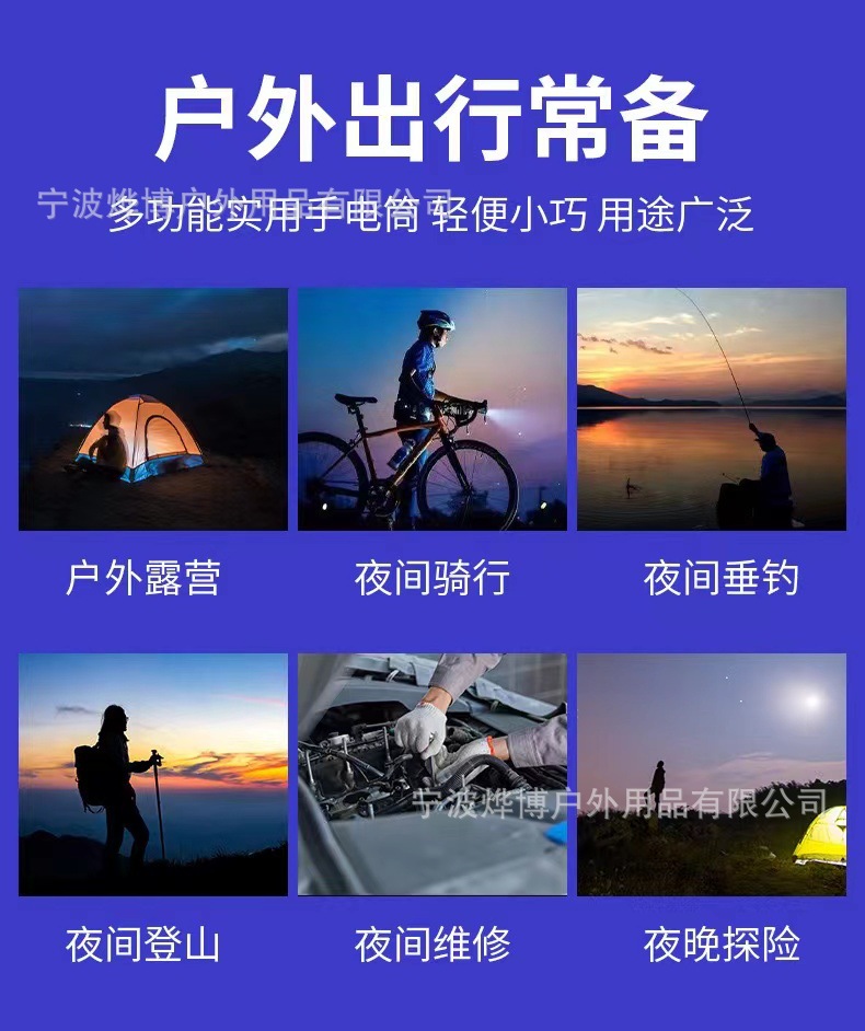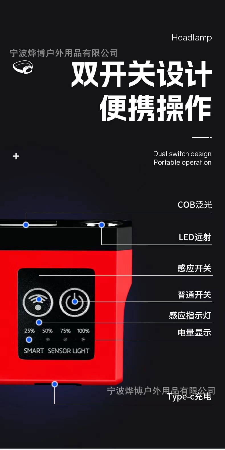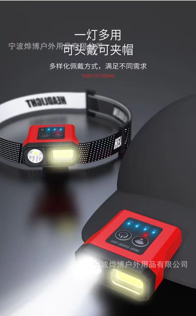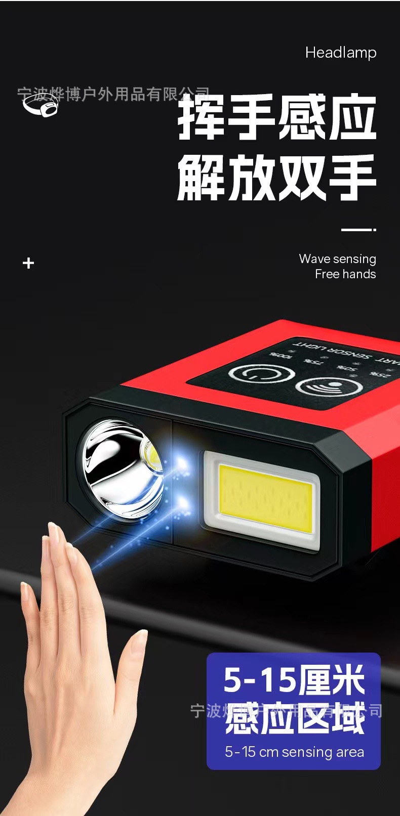 【档位介绍】:强光(双灯亮)-中光(LED亮)-中光(COB亮)-COB红光-COB红闪-LED和COB双闪-感应模式