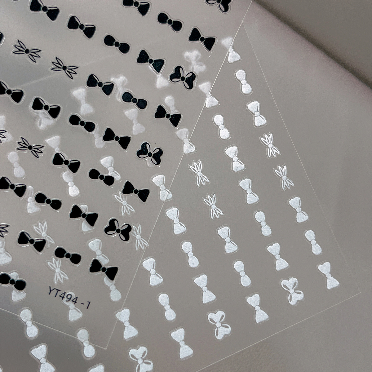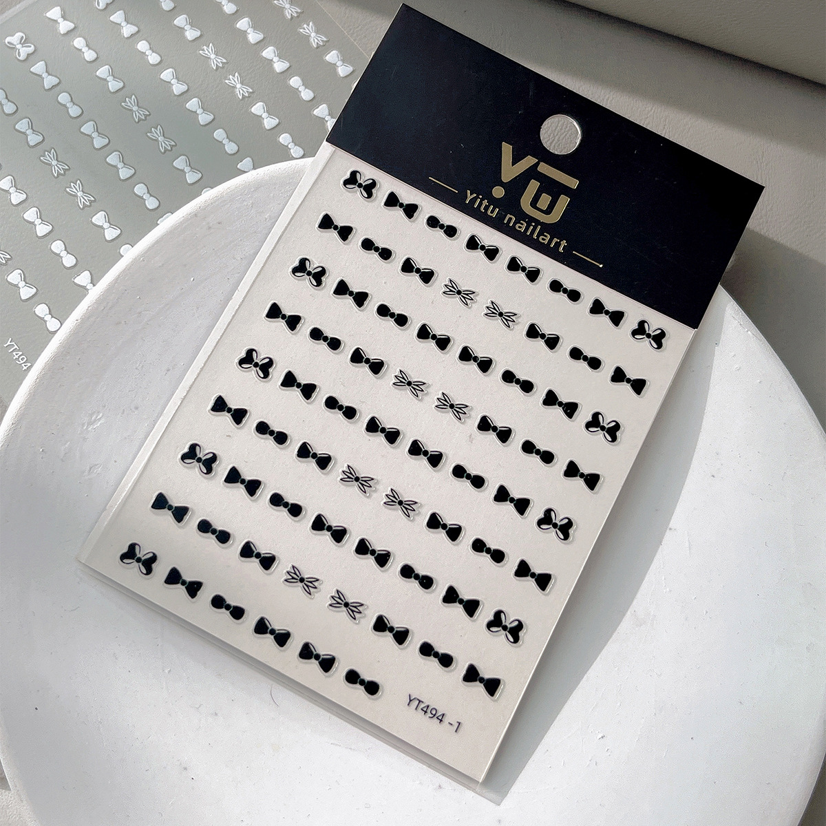 YITU 개미 그림 활 넥타이 네일 아트 스티커 블랙 화이트 접착식 엠보싱 네일 장식 스티커 YT494