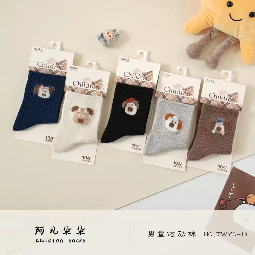 Afanduo 가을 플랫 아동용 양말, 스포츠 양말, 아기용 두꺼운 종아리 양말, 만화 아동용 면 양말 도매스토어 가기