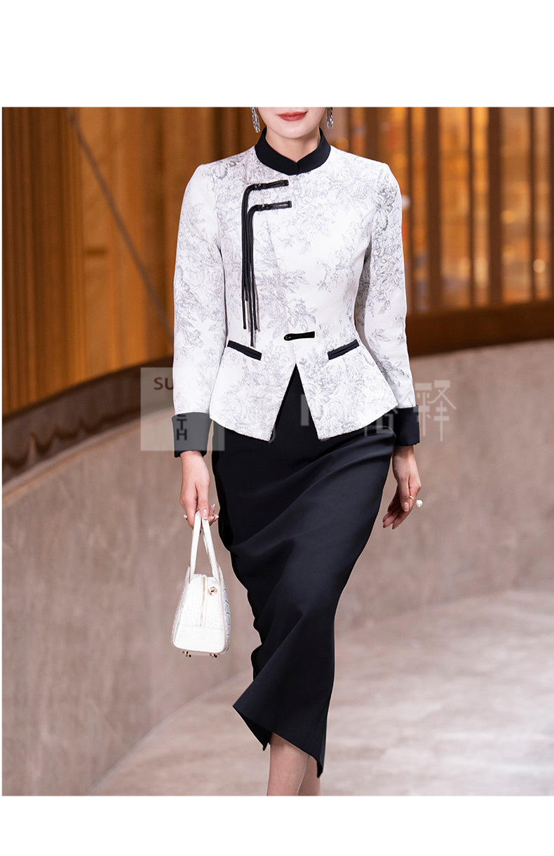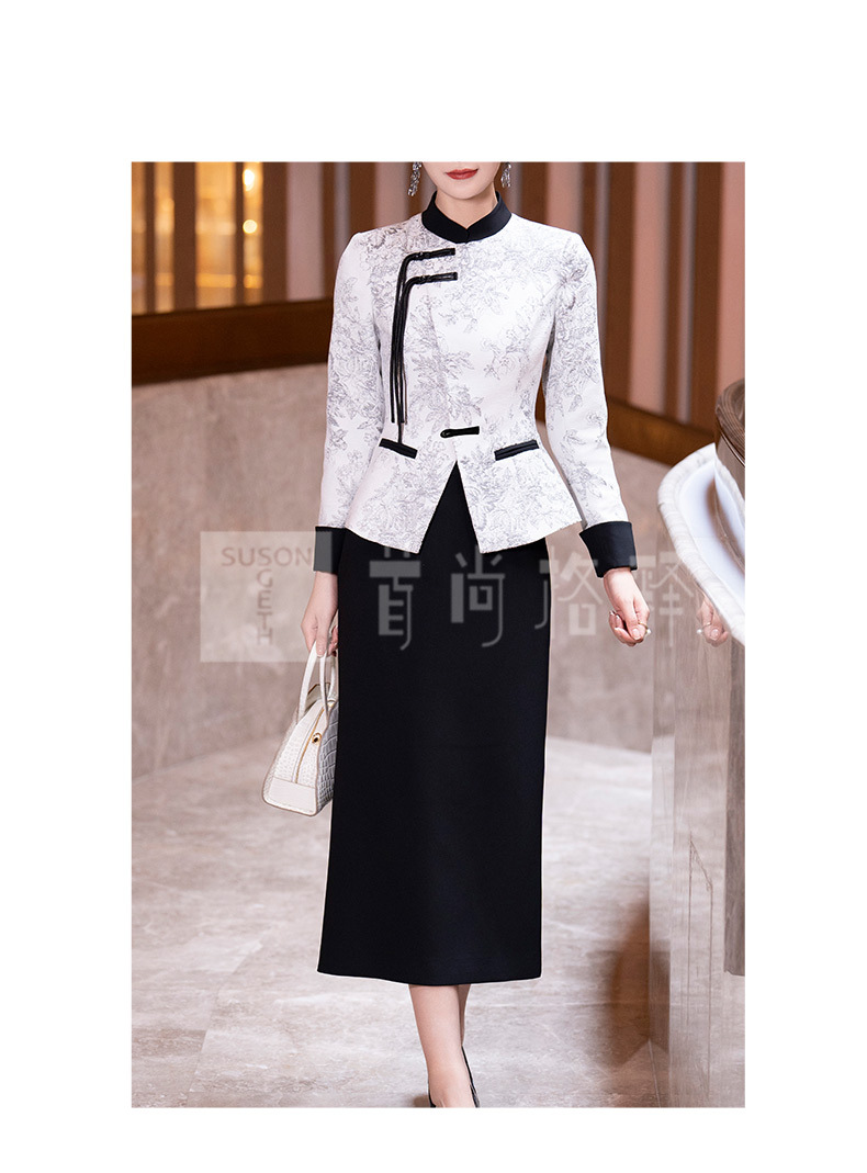 새로운 중국 스타일 원피스 가을 2024 새로운 중국 스타일 우아한 자카드 슬림 스커트 투피스 세트