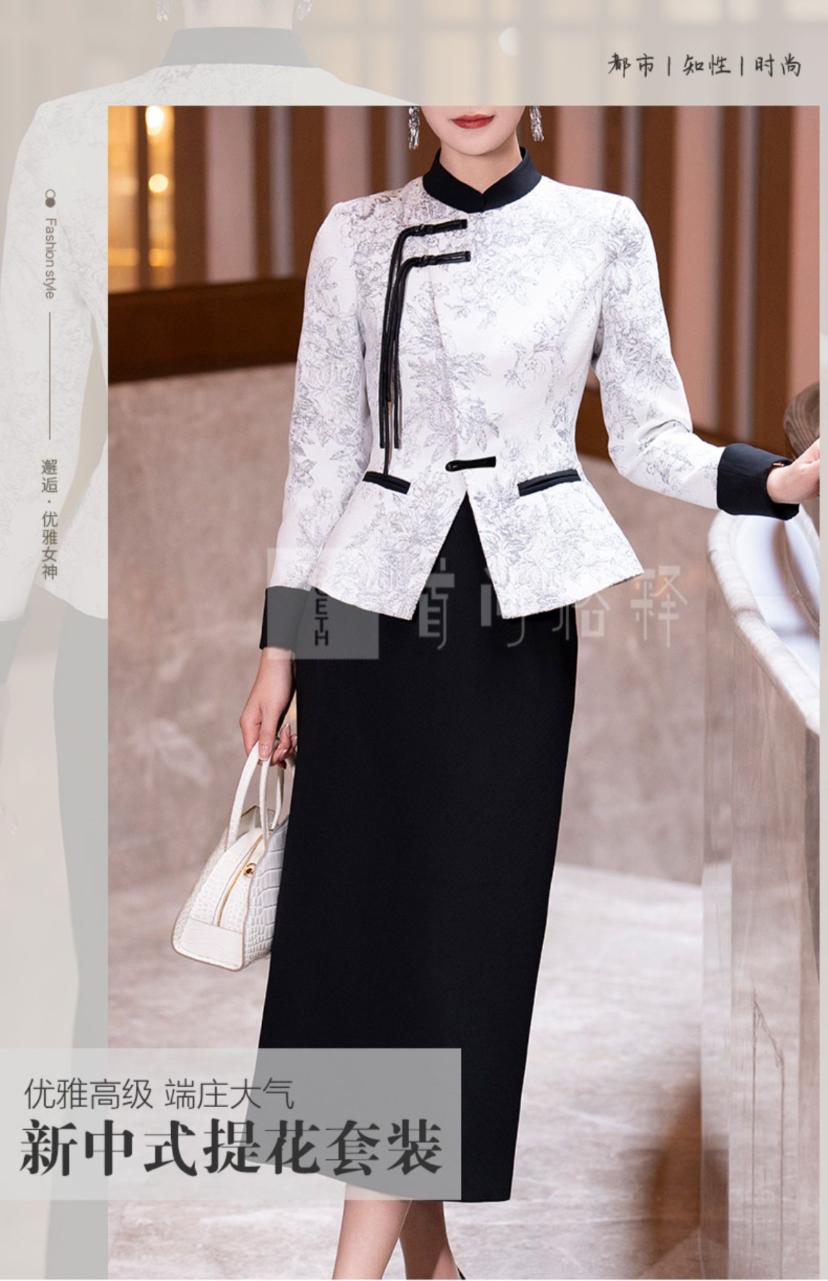 새로운 중국 스타일 원피스 가을 2024 새로운 중국 스타일 우아한 자카드 슬림 스커트 투피스 세트스토어 가기