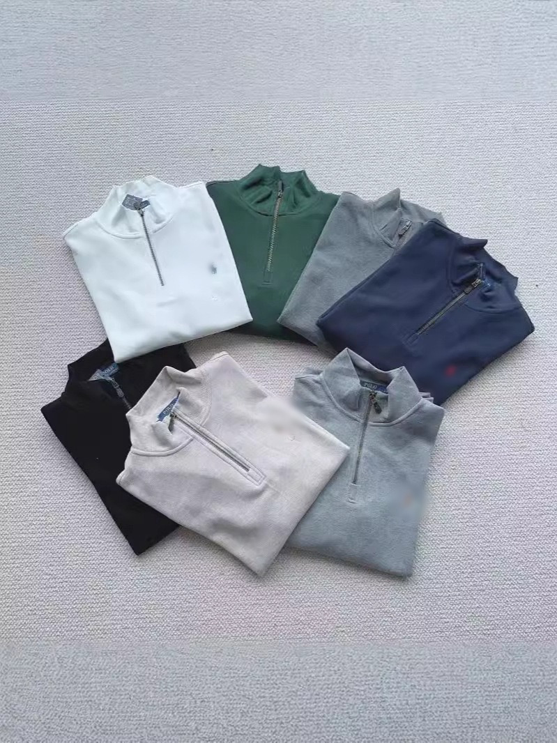 Rl 랄프 로렌 남성 하프 지퍼 스탠드 칼라 풀오버 스웨트셔츠 루즈핏 캐주얼 커플 니트 긴팔 셔츠