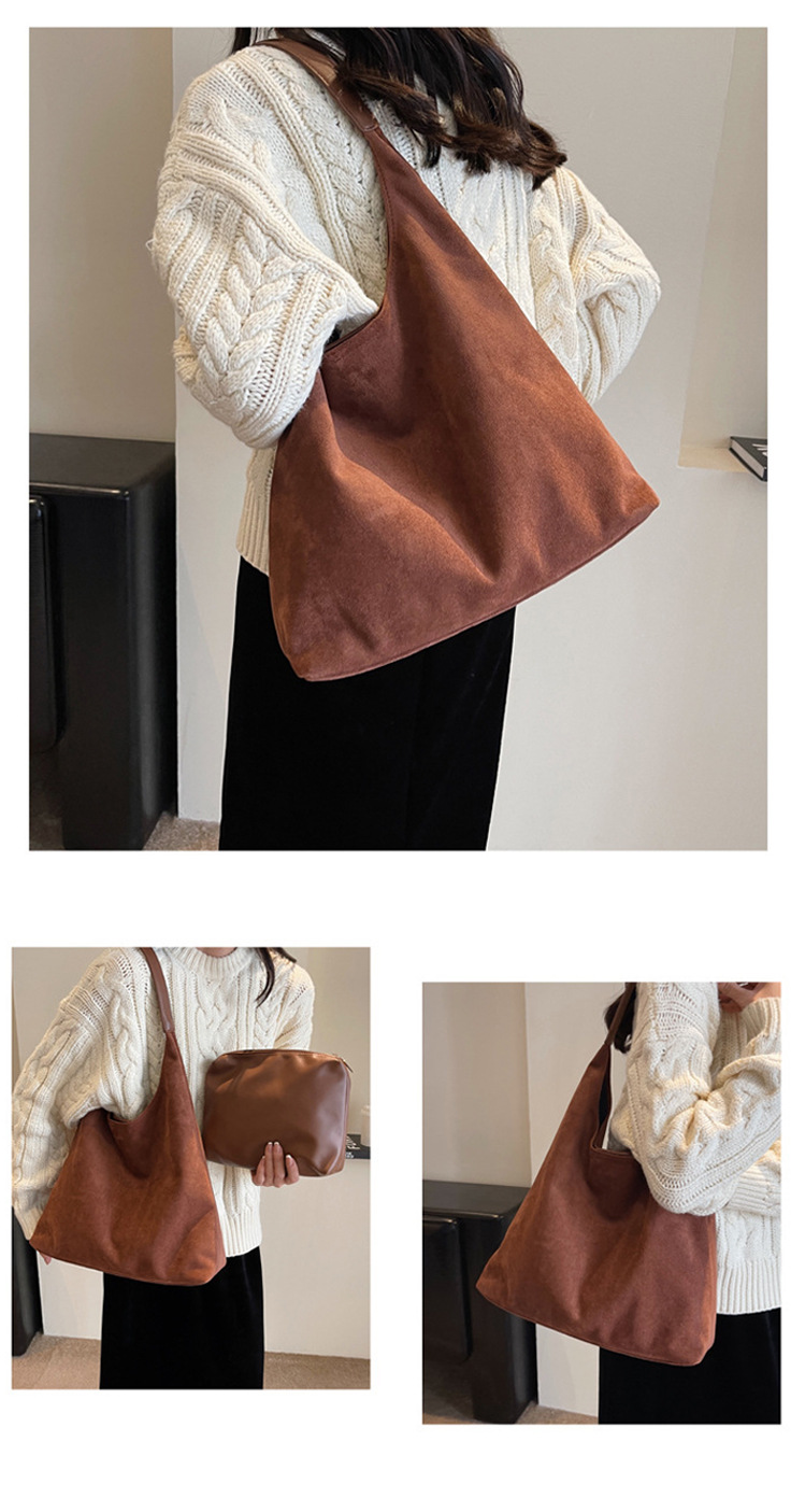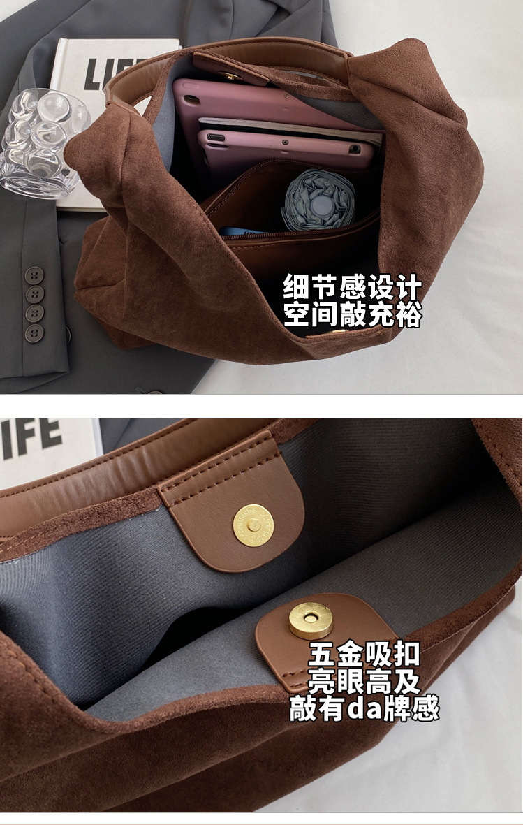 통근 토트 백 크로스 보더 뉴 스타일 간단한 스웨이드 숄더 언더 암 가방 여성 대용량 올 매치 여성용 가방스토어 가기