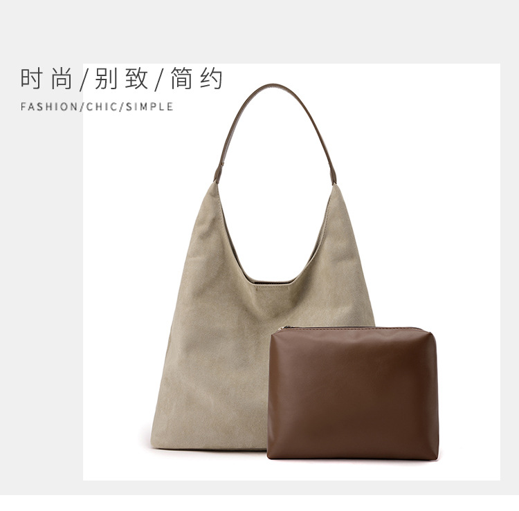 통근 토트 백 크로스 보더 뉴 스타일 간단한 스웨이드 숄더 언더 암 가방 여성 대용량 올 매치 여성용 가방