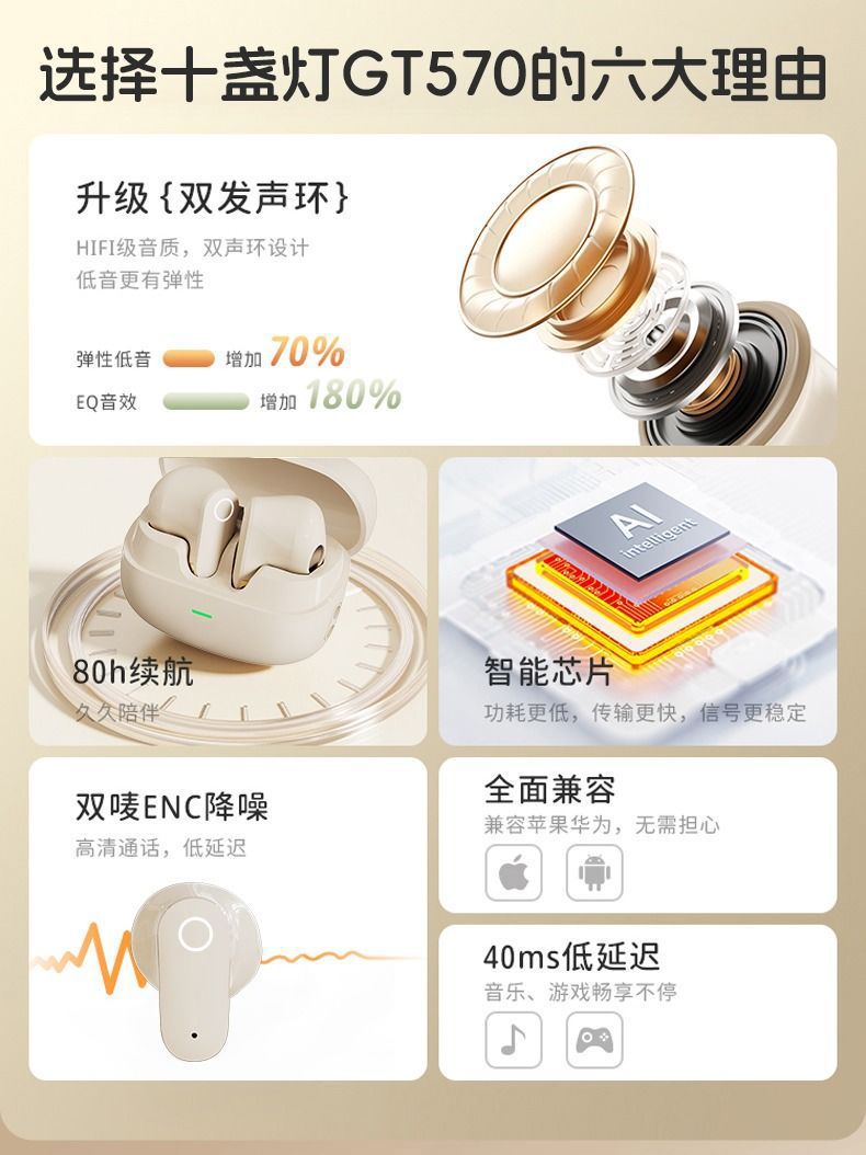 국경 간 GT570 새로운 하이 엔드 진정한 무선 블루투스 헤드셋 인 이어 스포츠 소음 감소 긴 내구성 높은 음질스토어 가기