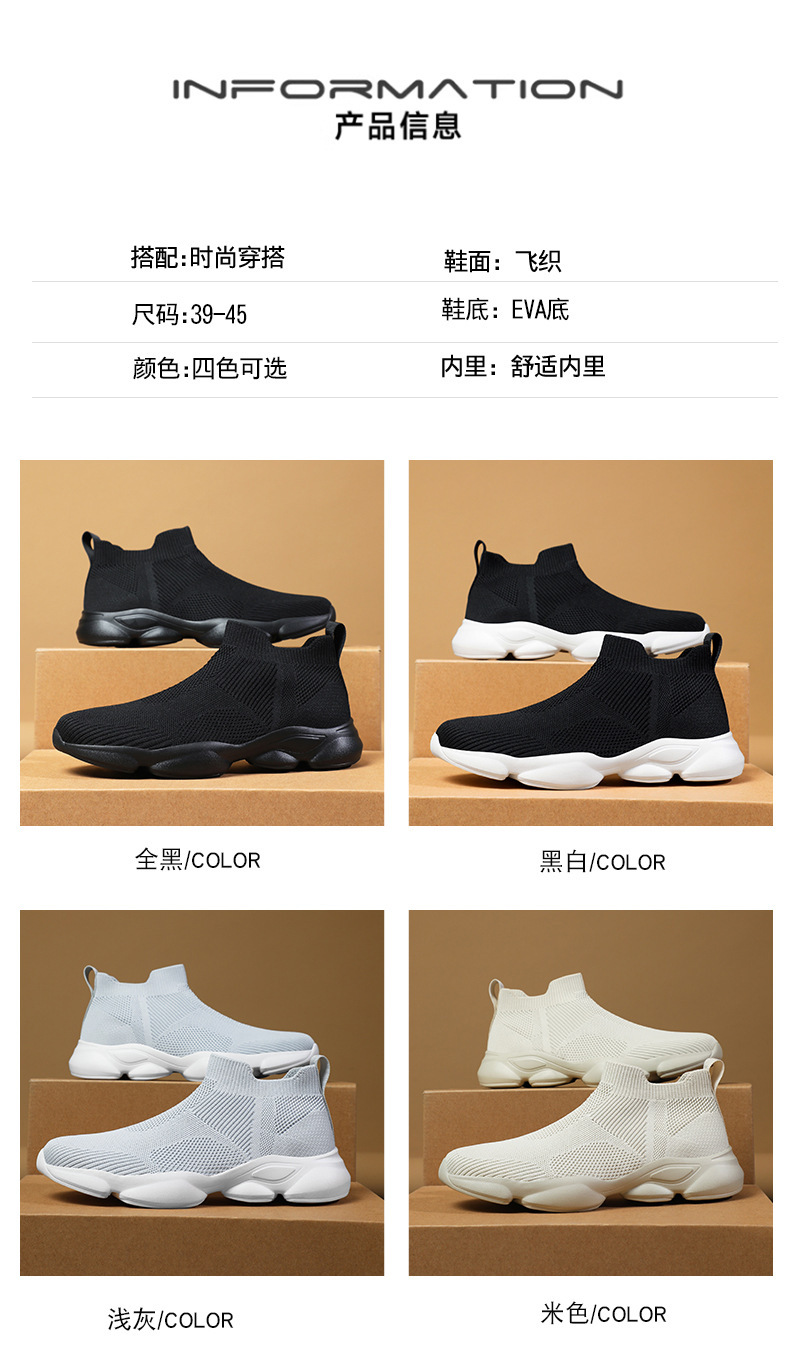 국경 간 플러스 사이즈 스트레치 양말 신발 하이 탑 플라이 짠 메쉬 게으른 패션 신발 슬립 온 캐주얼 스포츠 러닝 남성 신발스토어 가기