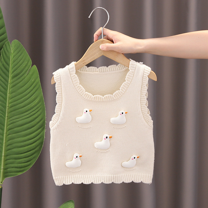 스웨터 웨이스트 코트 2024 봄과 가을 새 소녀의 니트 스웨터 조끼 아기 스타일 올 매치 스웨터 민소매스토어 가기