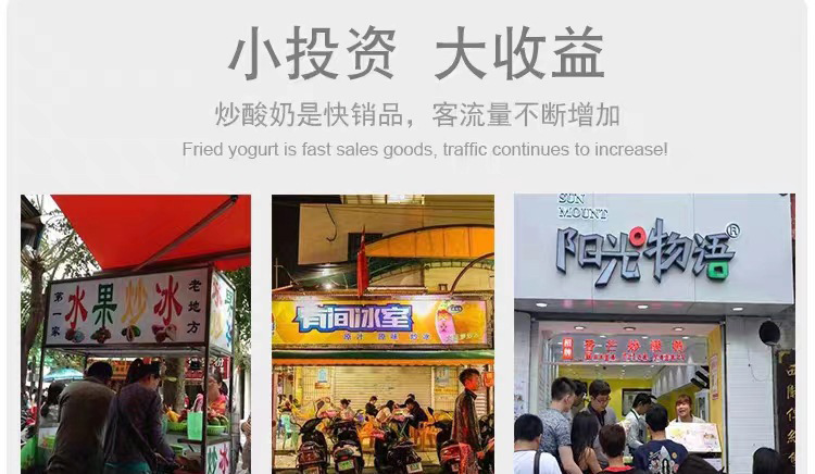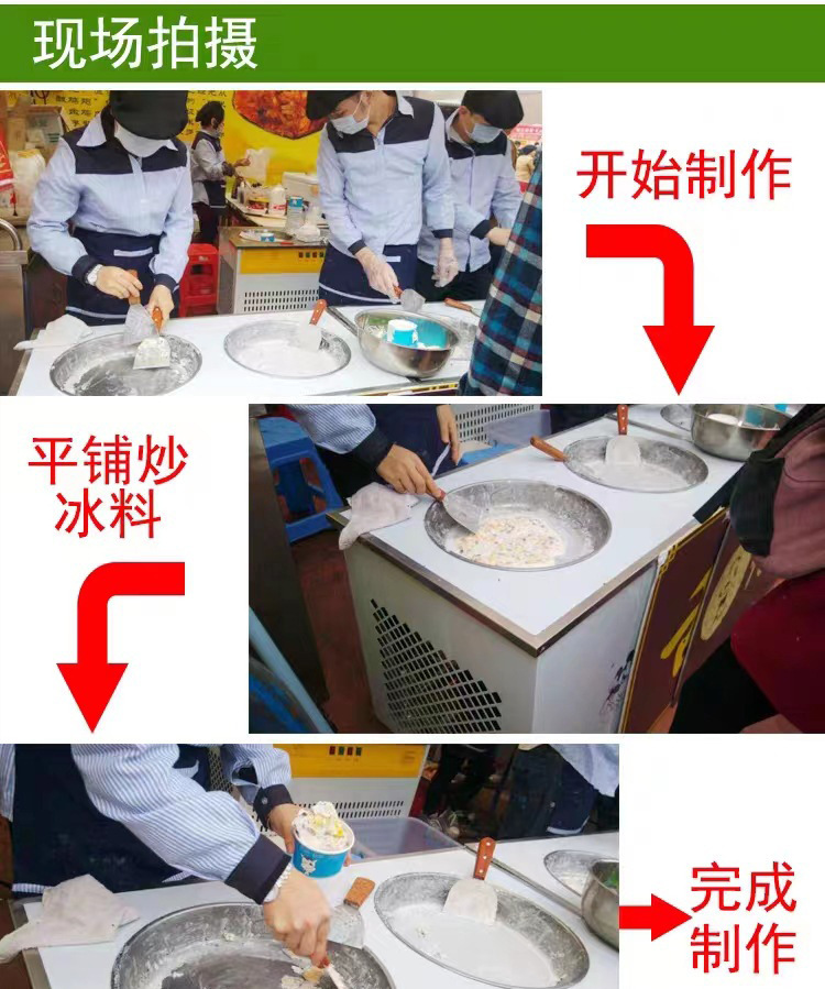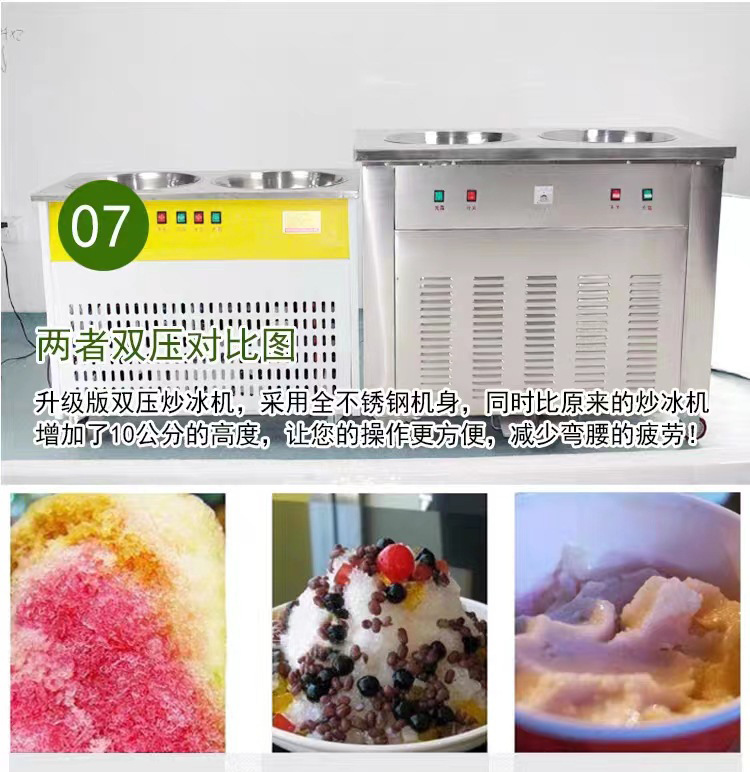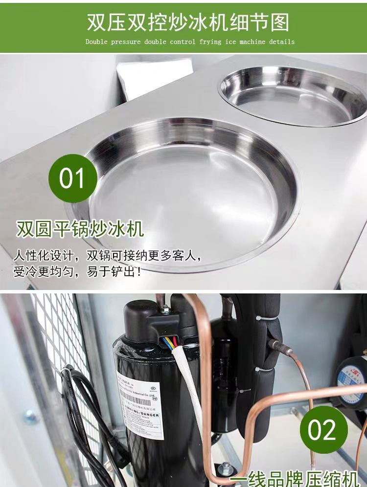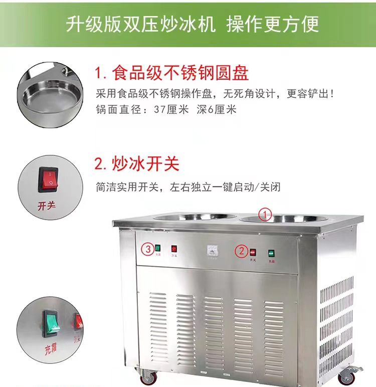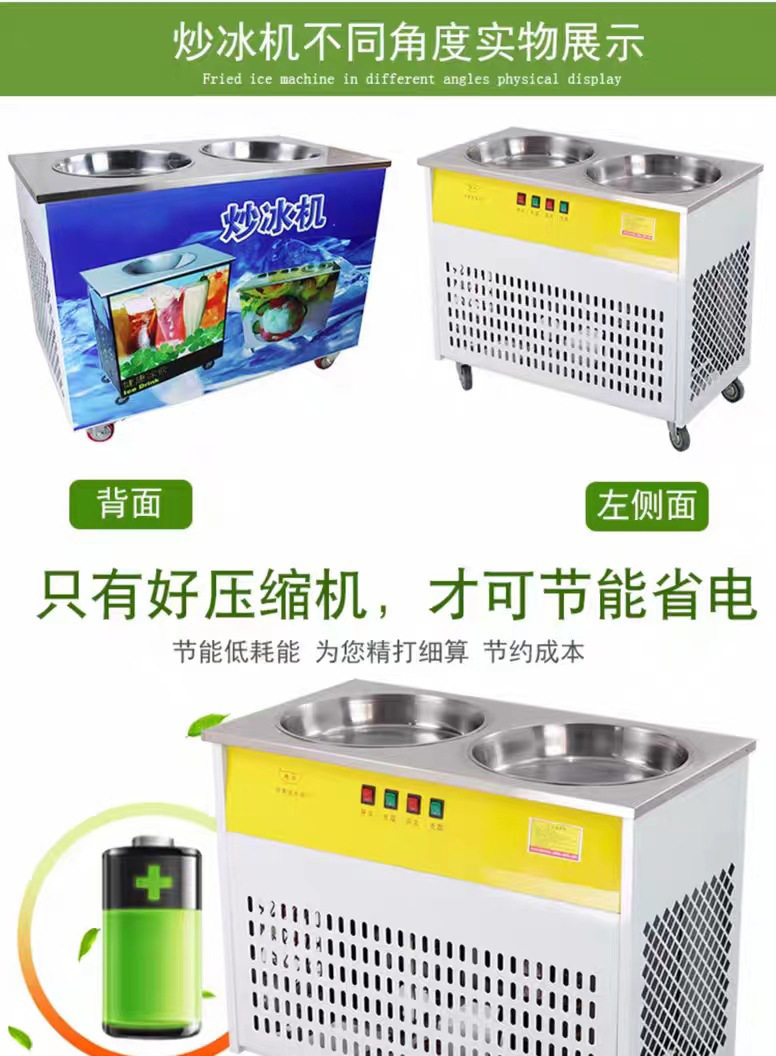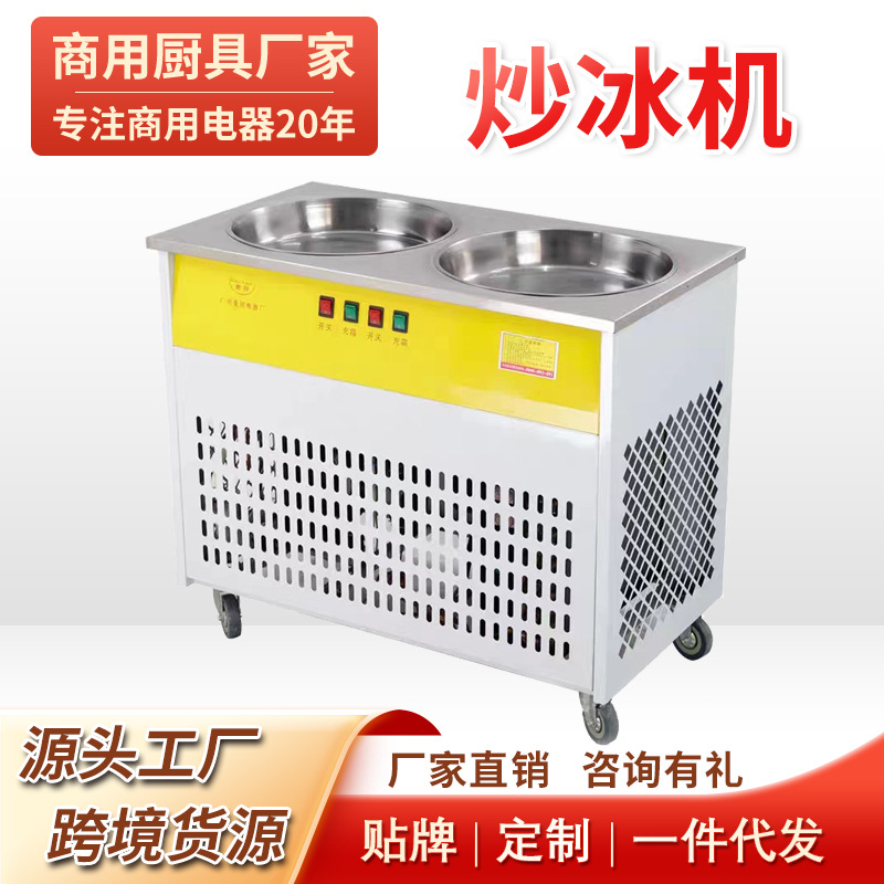 두 배 냄비 튀김 얼음 기계 튀김 요구르트 상업 튀김 우유 과일 튀김 얼음 둥근 냄비 야외 마구간 장비