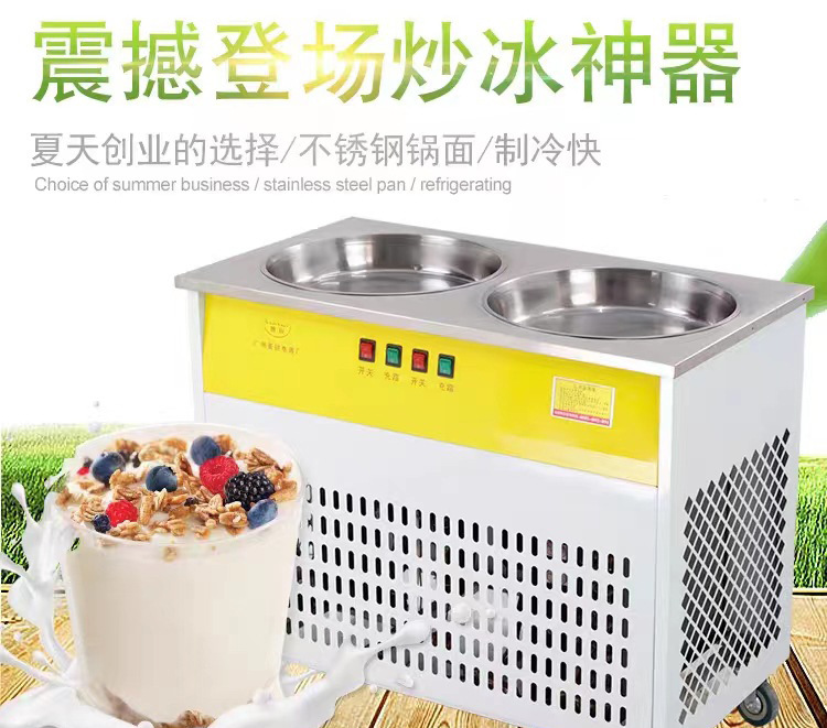 두 배 냄비 튀김 얼음 기계 튀김 요구르트 상업 튀김 우유 과일 튀김 얼음 둥근 냄비 야외 마구간 장비스토어 가기