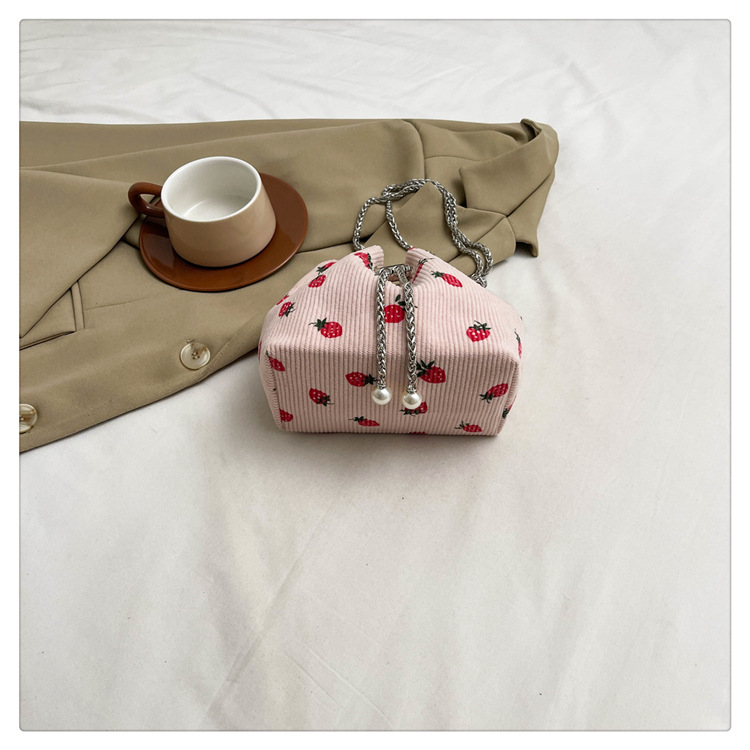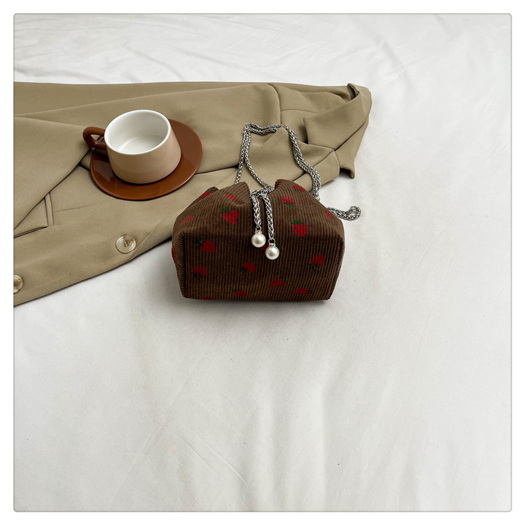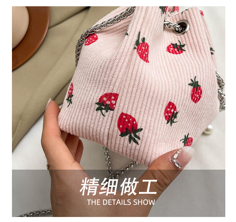 니치 하이 엔드 드로 스트링 beveled 백 여성의 세련된 새 딸기 체크 무늬 버킷 백 올 매치 숄더 메신저 백