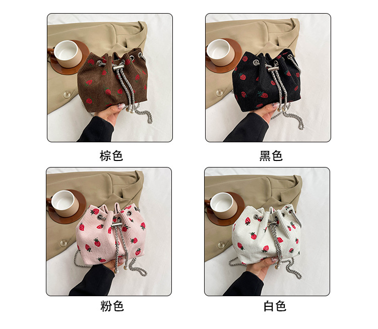 니치 하이 엔드 드로 스트링 beveled 백 여성의 세련된 새 딸기 체크 무늬 버킷 백 올 매치 숄더 메신저 백스토어 가기