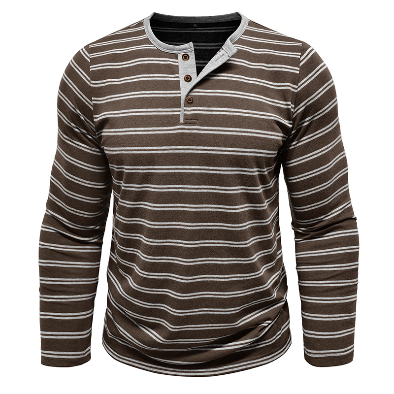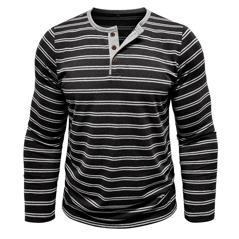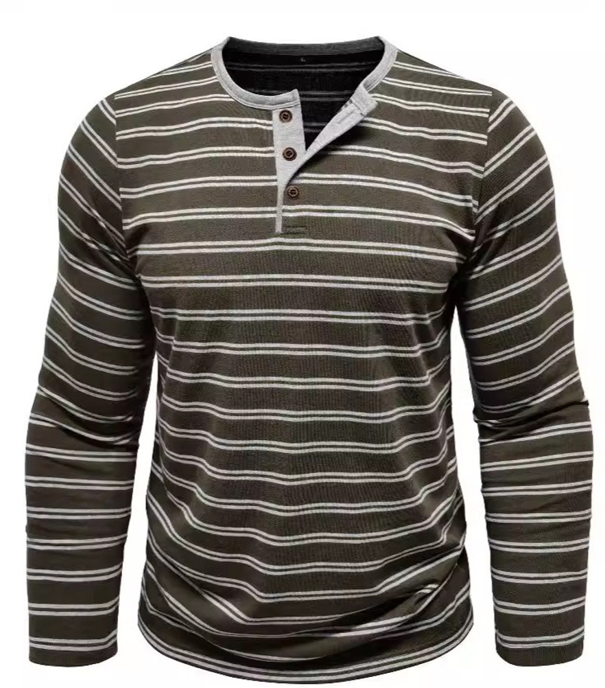 2025 크로스보더 남성 가을 겨울 대형 대외 무역 긴팔 티셔츠 유럽과 미국 남성 스트라이프 헨리 셔츠 3버튼 탑