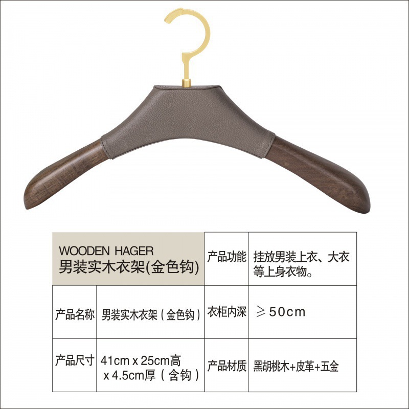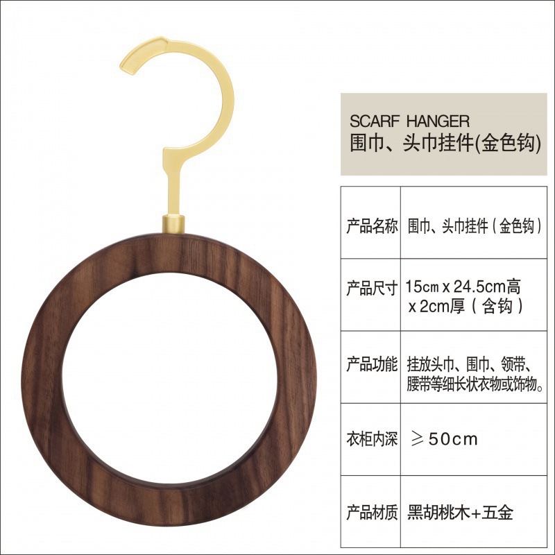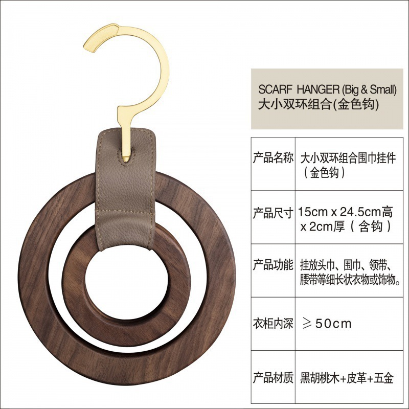 • 화려한 골드 골드 후크 - 남성용 원목 옷걸이 + 작은 반지
