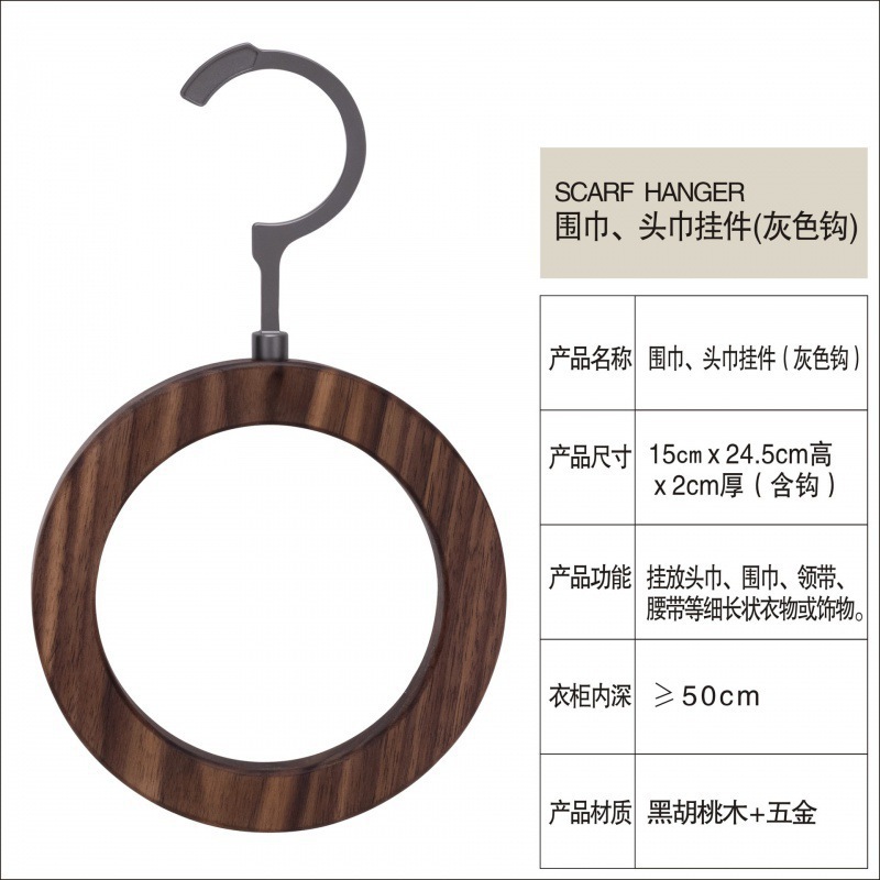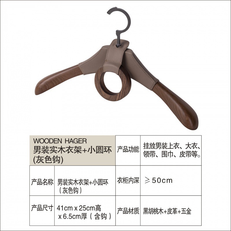 • 텅스텐 그레이 그레이 후크 - 남성용 원목 옷걸이 + 작은 반지