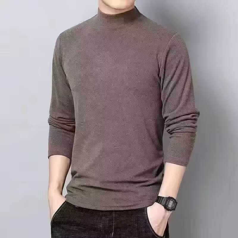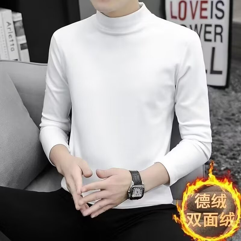 잘 생긴 외형 양털베이스 셔츠 남자의 따뜻한 한국 반 하이 칼라베이스 셔츠 슬림핏 솔리드 컬러 긴팔 티셔츠