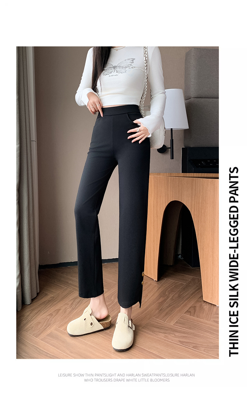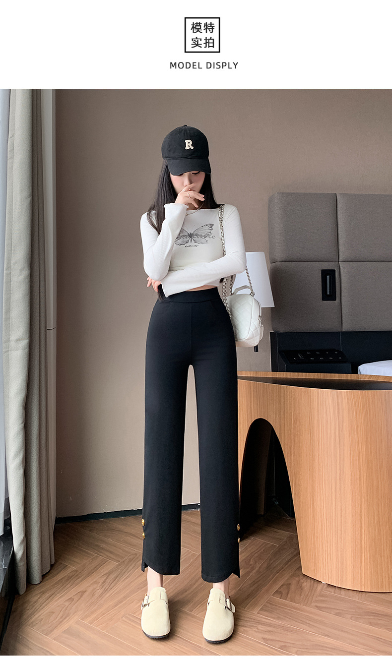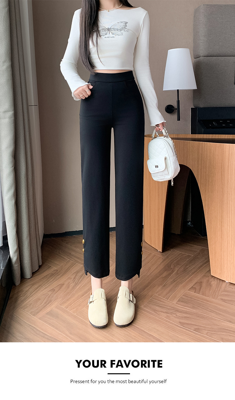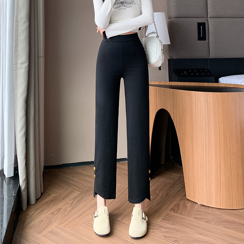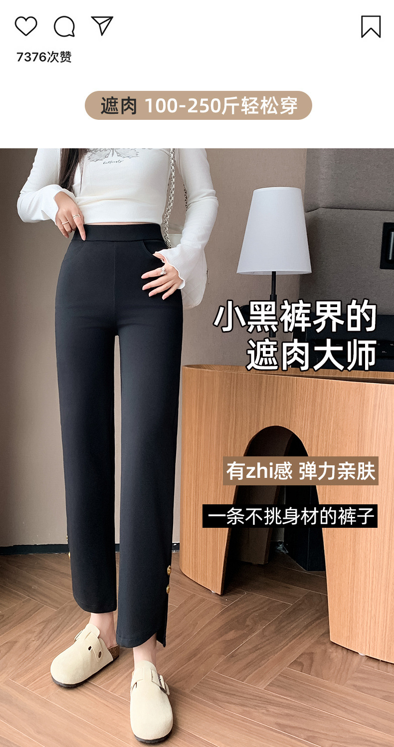 블랙 스트레이트 다리 바지 여성 플러스 사이즈 봄, 여름 및 가을 지방 mm200 진 높은 허리 슬리밍 높은 탄성 조커 캐주얼 바지스토어 가기