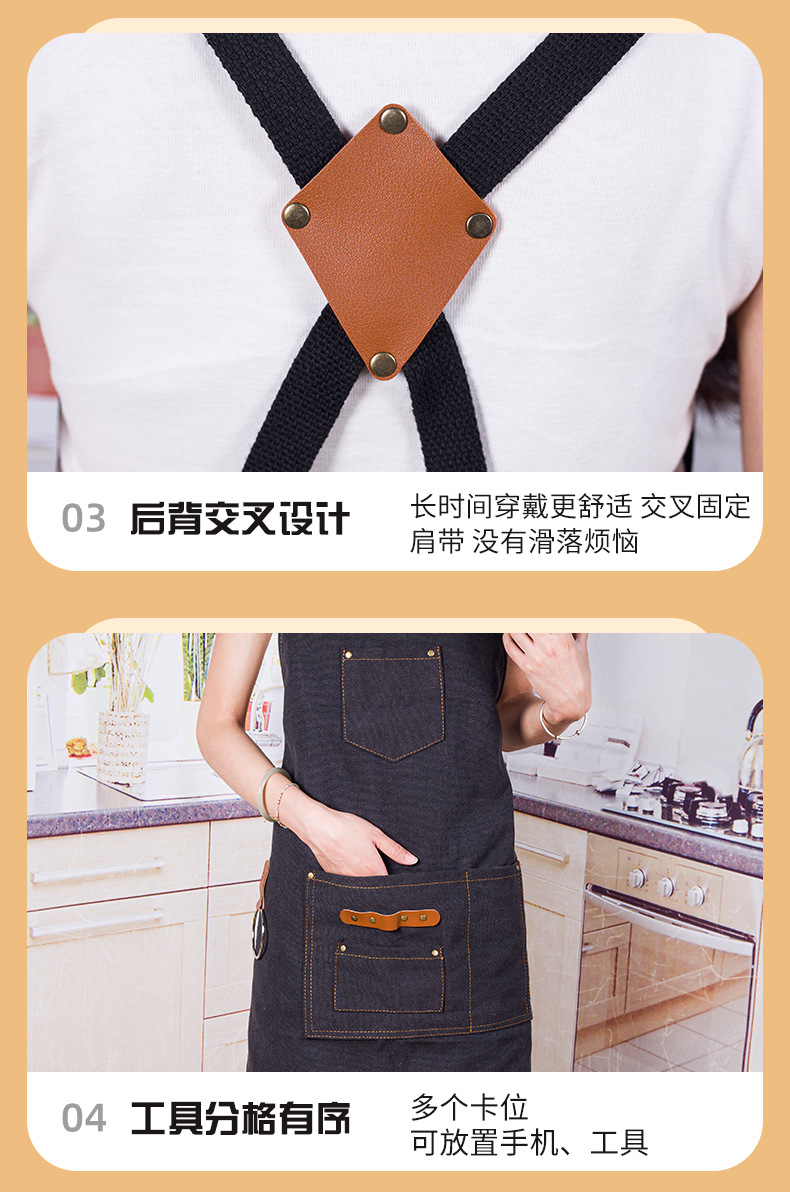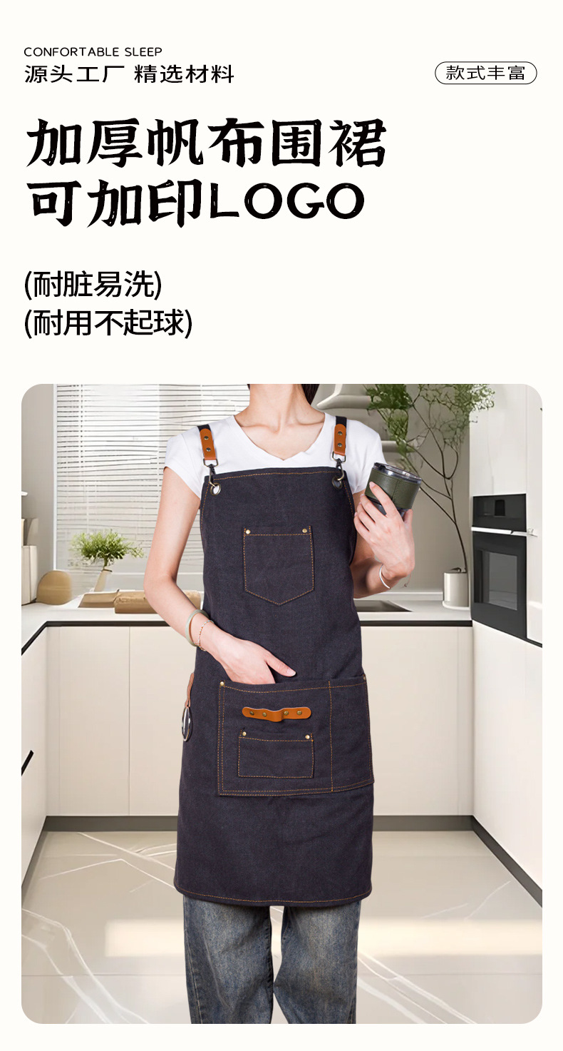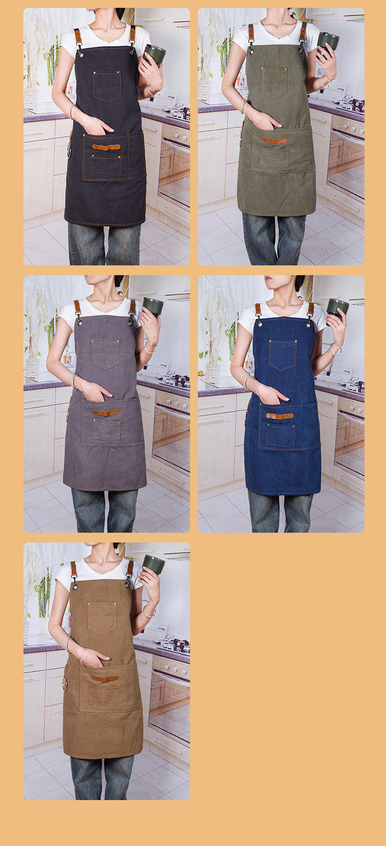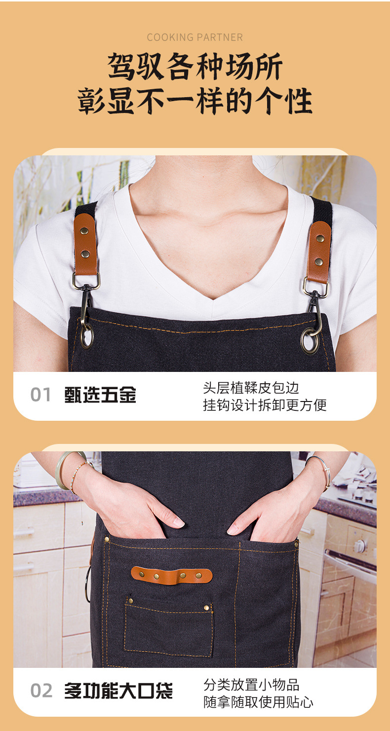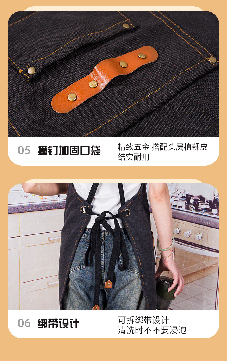 베이킹 밀크티 커피숍용 두꺼운 캔버스 앞치마 맞춤형 로고 인쇄 케이터링 슈퍼마켓 웨이터 작업복 가정용스토어 가기