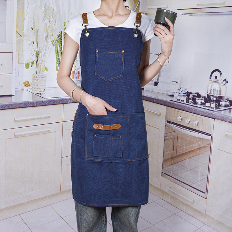 베이킹 밀크티 커피숍용 두꺼운 캔버스 앞치마 맞춤형 로고 인쇄 케이터링 슈퍼마켓 웨이터 작업복 가정용