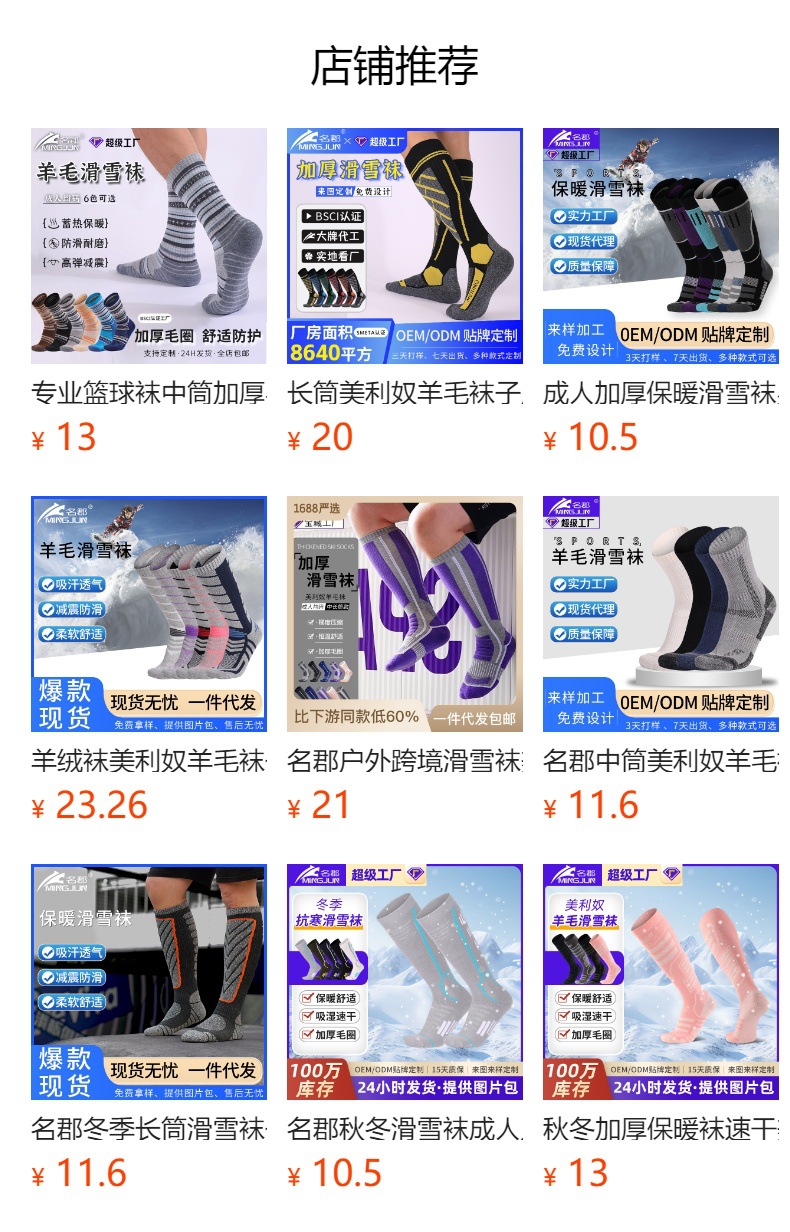 야외 스키 양말, 땀 흡수 및 따뜻한 수건 바닥, 두꺼운 스포츠 양말, 가을 겨울 남성 및 여성 메리노 울 양말 맞춤 제작스토어 가기