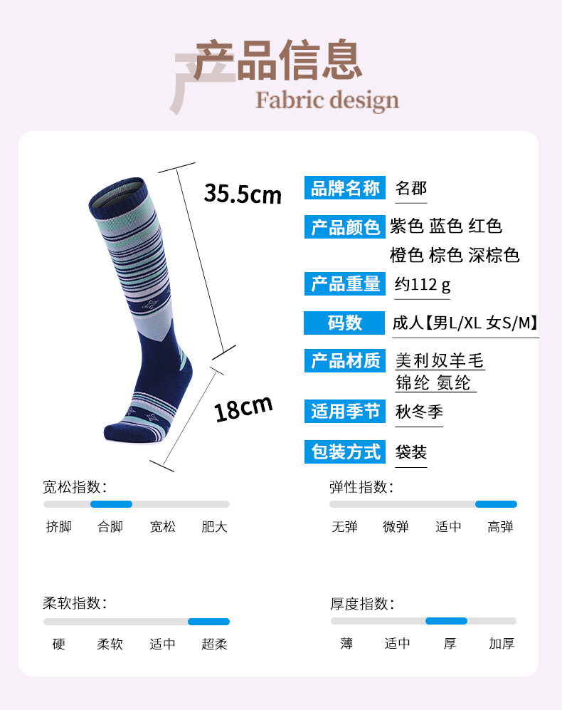 야외 스키 양말, 땀 흡수 및 따뜻한 수건 바닥, 두꺼운 스포츠 양말, 가을 겨울 남성 및 여성 메리노 울 양말 맞춤 제작
