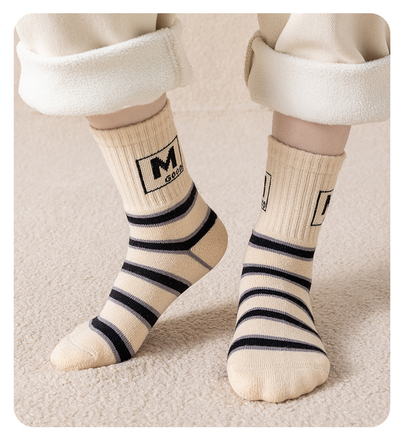 겨울 테리 두꺼운 어린이 양말면 따뜻한 통기성 내한성 소년 소녀 양말 초등학생 줄무늬 편지 양말