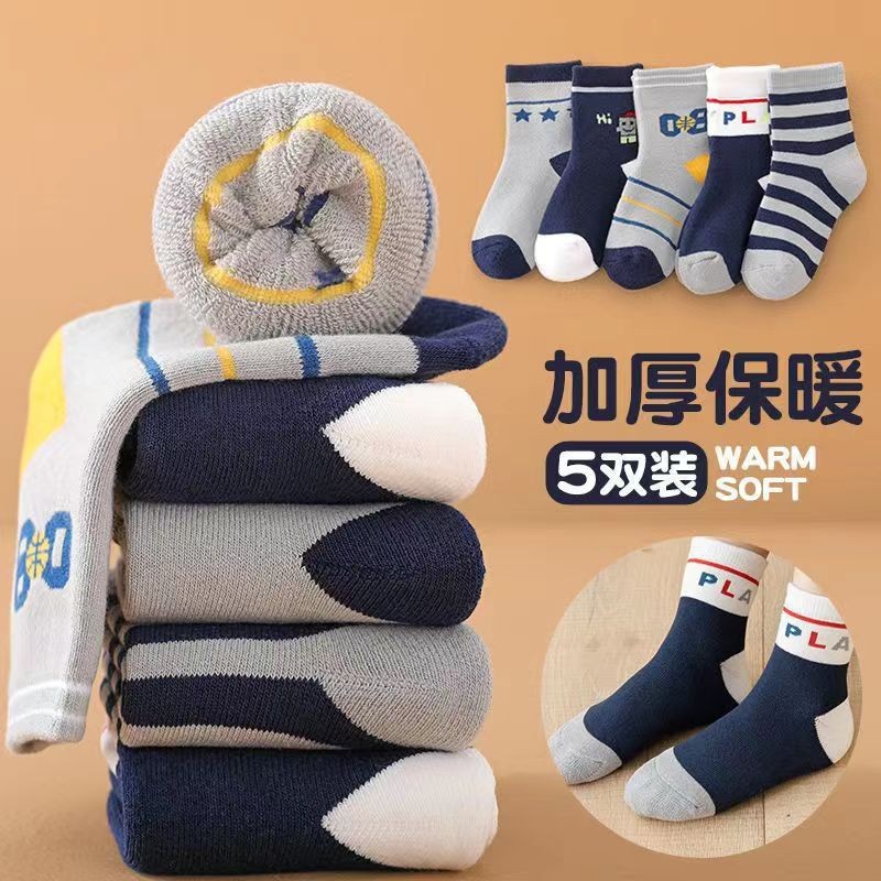 겨울 테리 두꺼운 어린이 양말면 따뜻한 통기성 내한성 소년 소녀 양말 초등학생 줄무늬 편지 양말스토어 가기