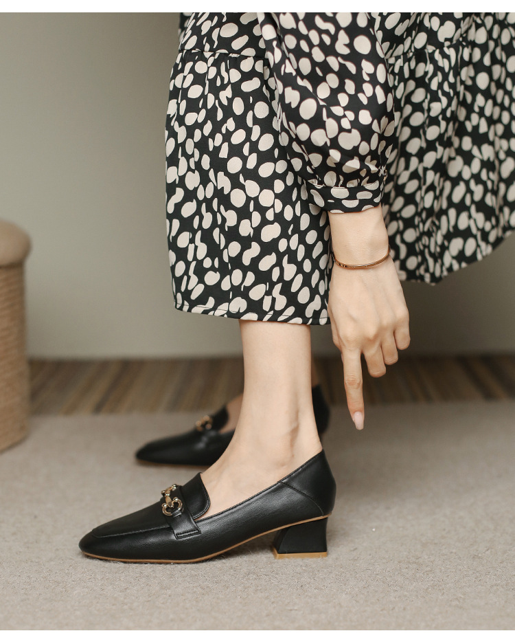 여성 정품 가죽 소프트 걸 슬립 온 게으른 신발 스퀘어 헤드 봄과 가을 원피스 사계절 작업 부드러운 OL 통근 여성 신발 영국 스타일