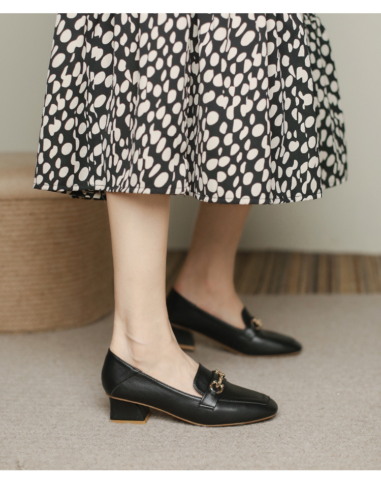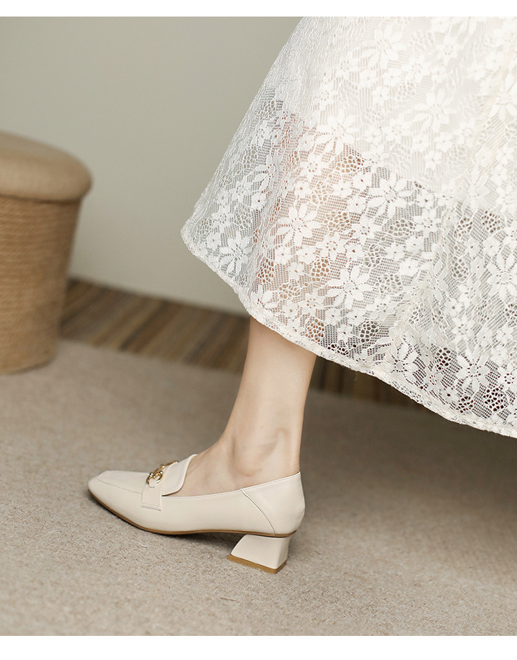 여성 정품 가죽 소프트 걸 슬립 온 게으른 신발 스퀘어 헤드 봄과 가을 원피스 사계절 작업 부드러운 OL 통근 여성 신발 영국 스타일스토어 가기