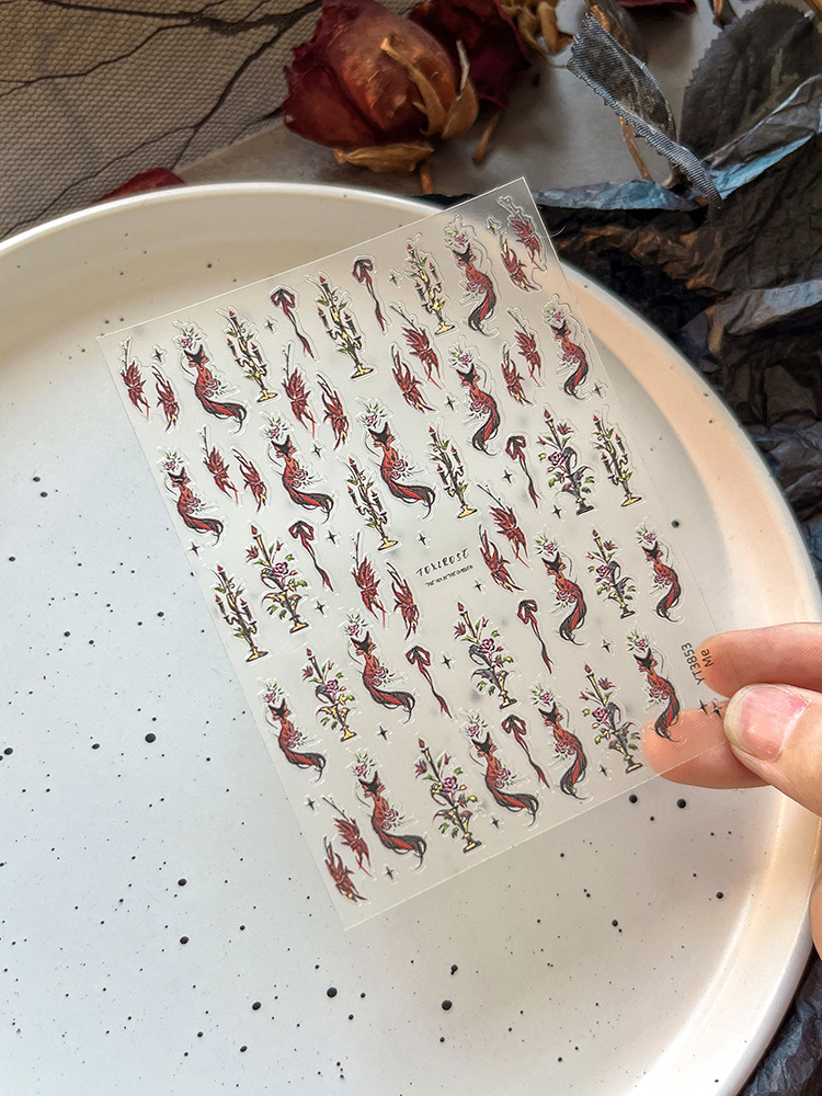 YITU 개미 그림 폭스 브론징 네일 아트 스티커 금속 로즈 램프 스탠드 빈티지 네일 팩 스티커 도매 YT3853스토어 가기