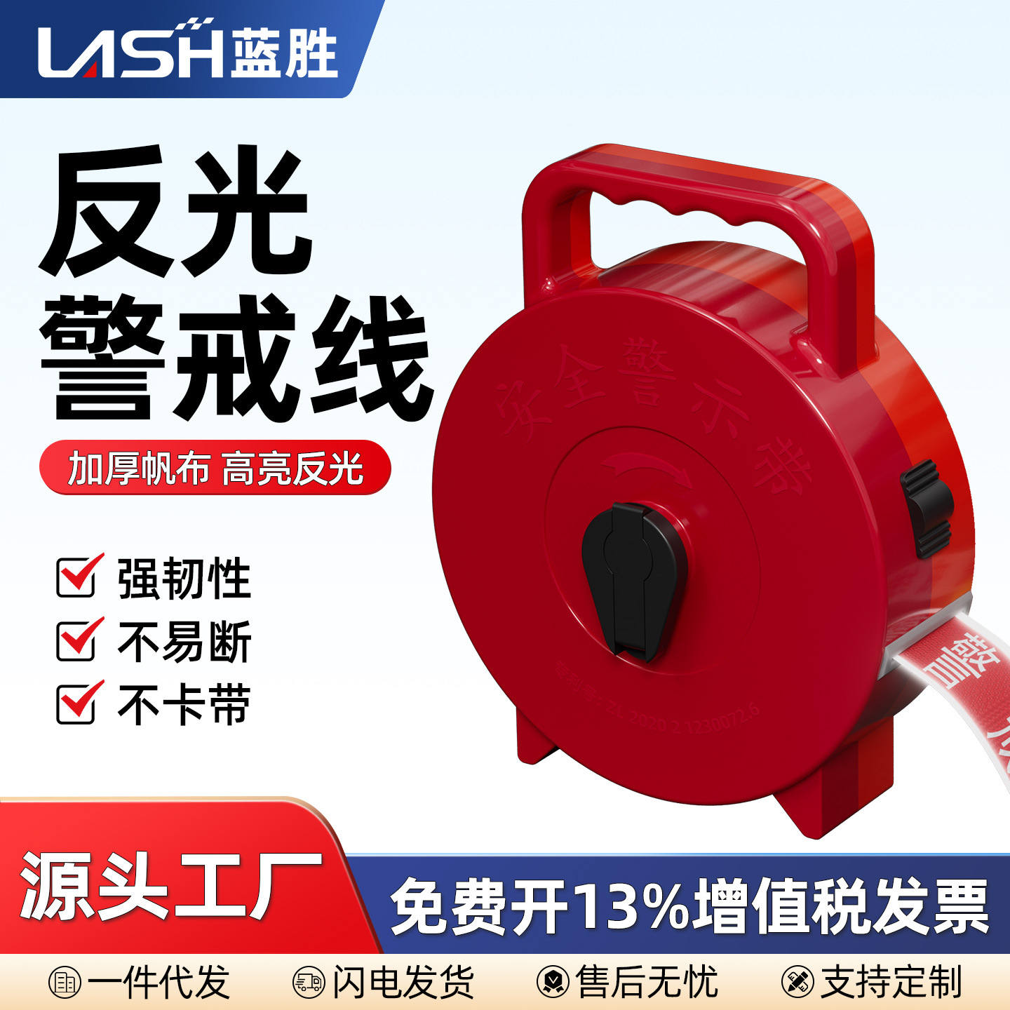 Lansheng 반사 코르 돈 안전 격리 벨트 경고 벨트 개폐식 경찰 라인 케이블 두꺼운 폴리 에스테르 캔버스 로프스토어 가기