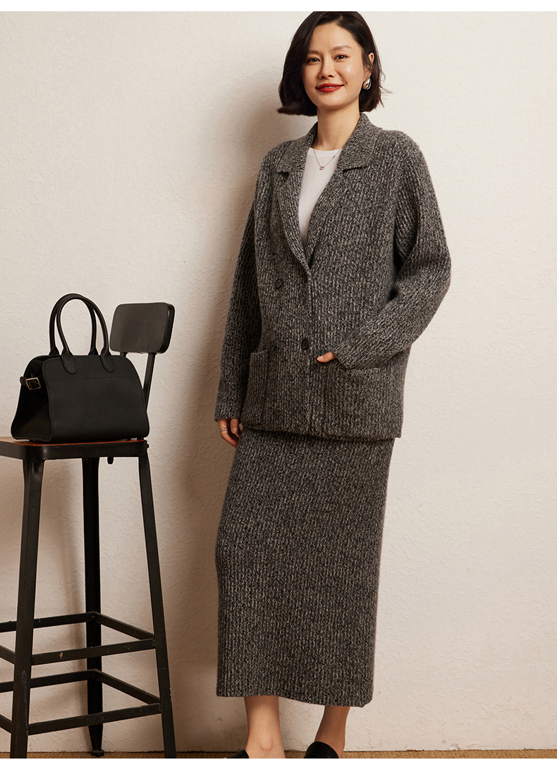 세트 칼라 캐시미어 스웨터 2024 가을 겨울 새로운 여성 플로라 투피스 스커트 한국식 코트 샤넬 스타일