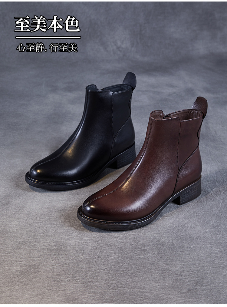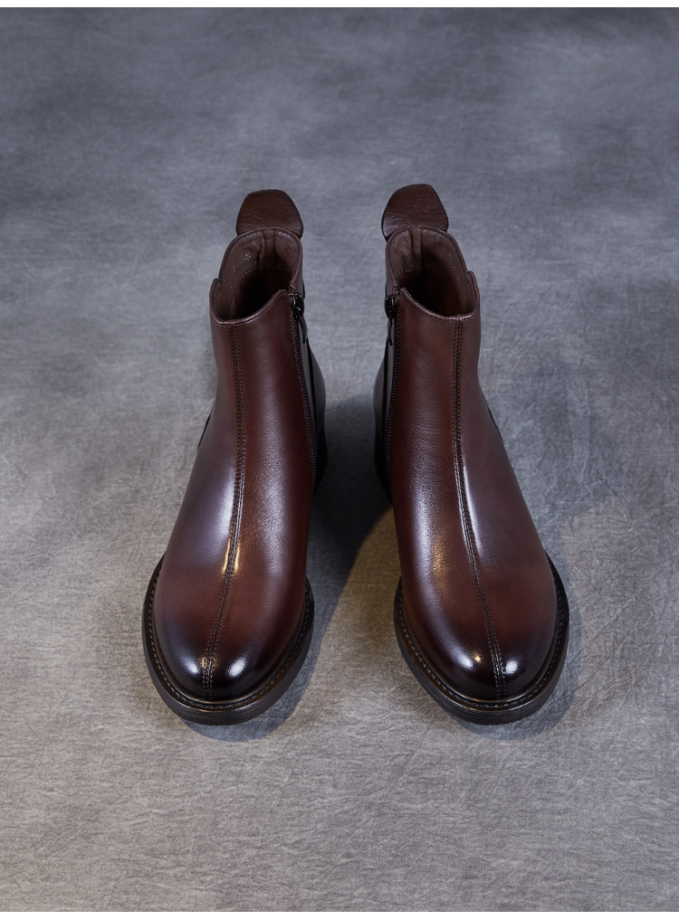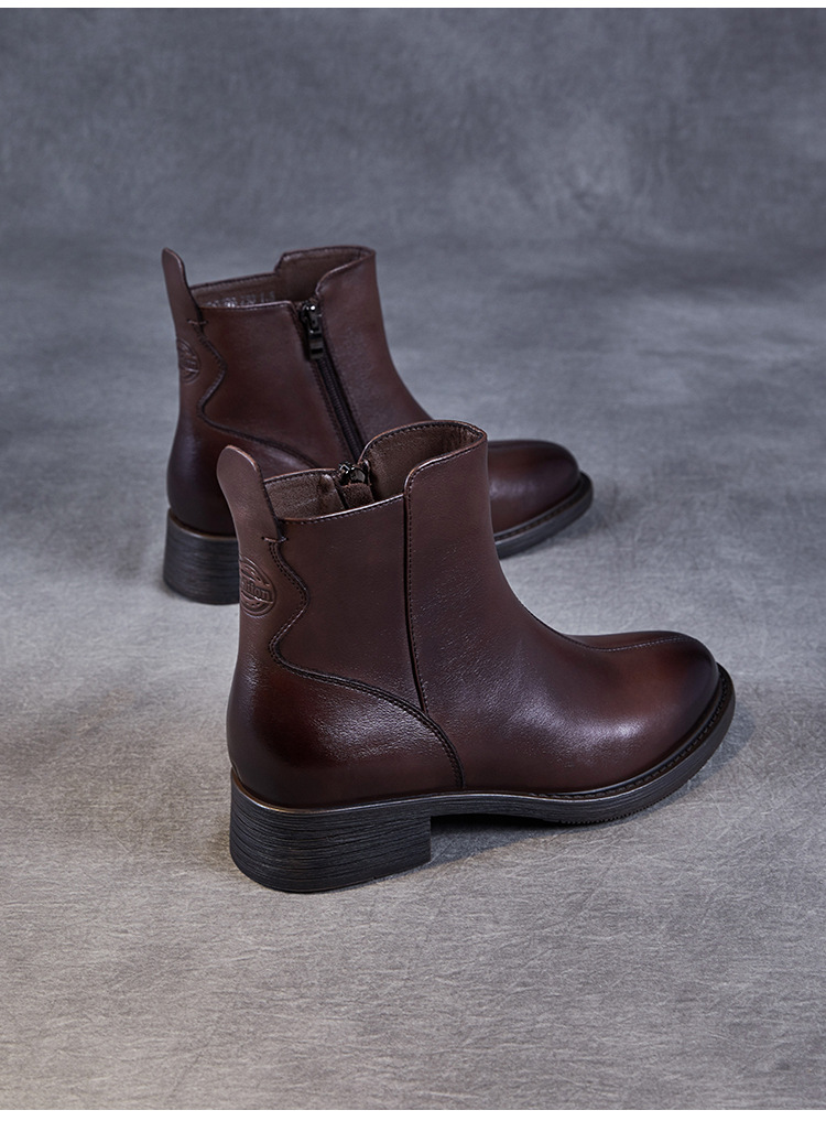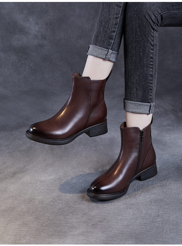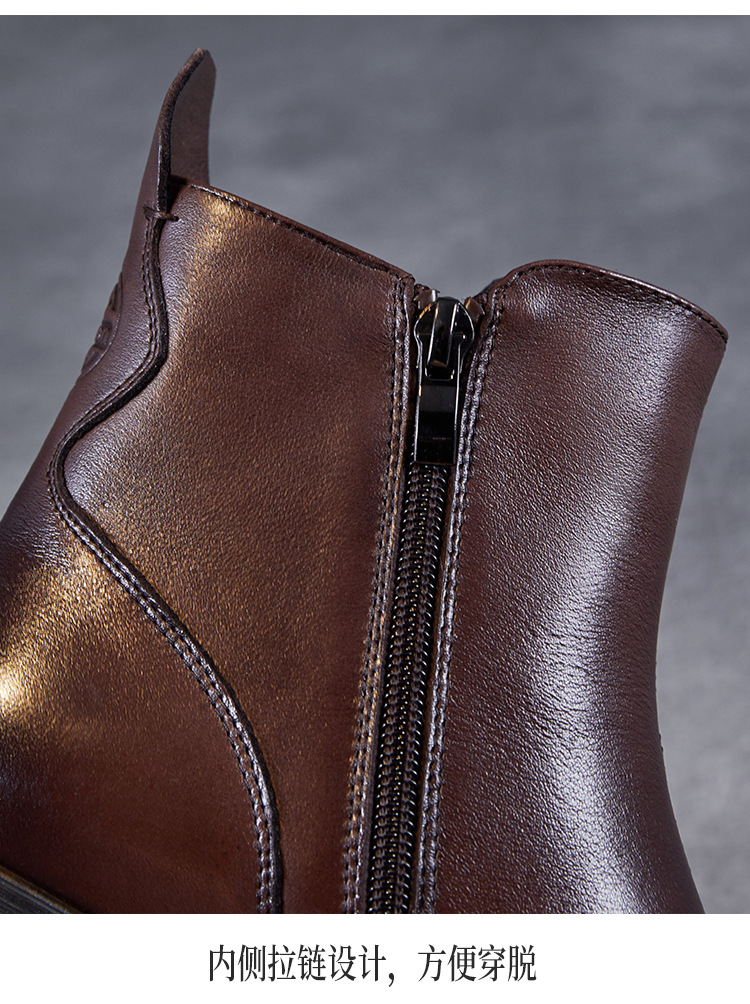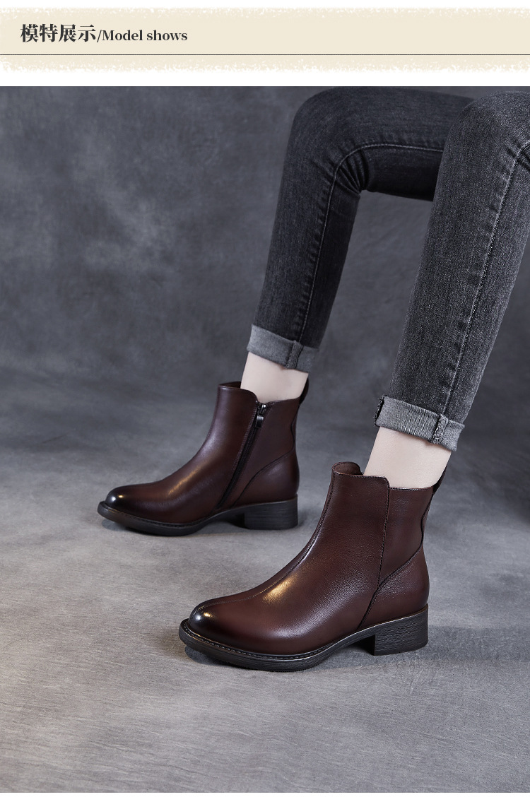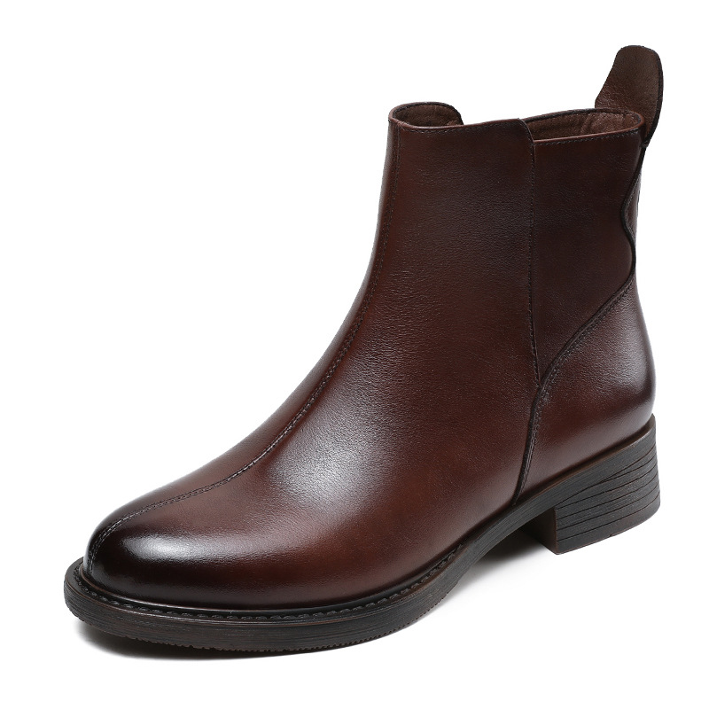 정품 가죽 빈티지 굵은 뒤꿈치 2024 가을 첼시 발목 부츠 탑 레이어 Cowhide 영국 라운드 발가락 마틴 부츠 다크 브라운 여성용 부츠스토어 가기
