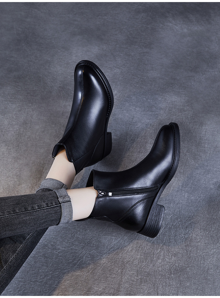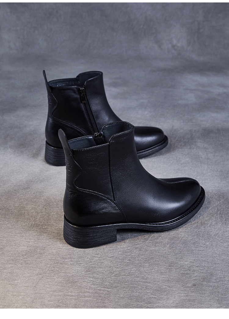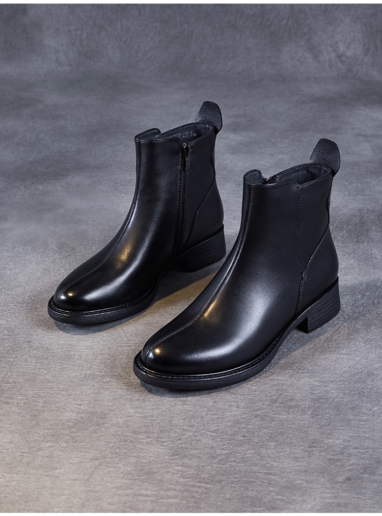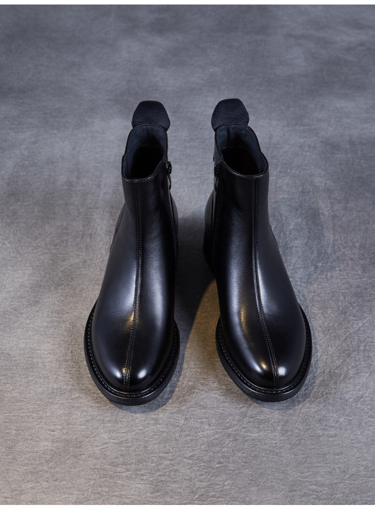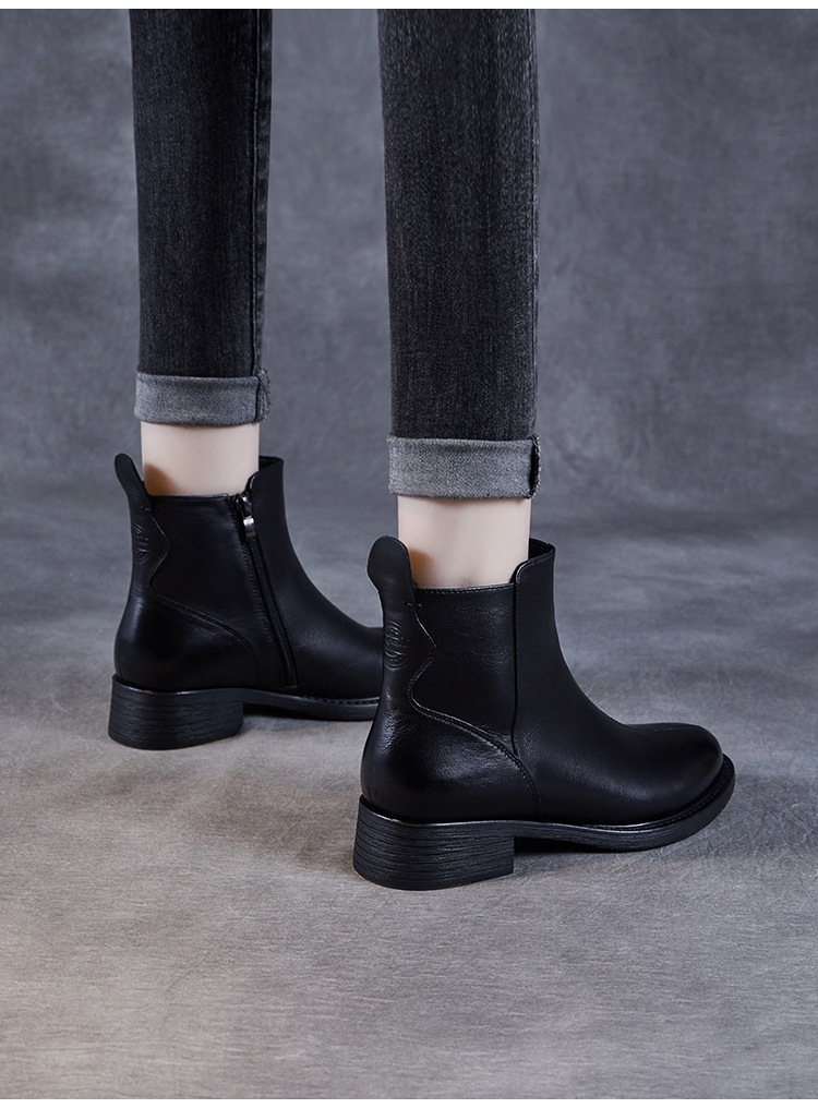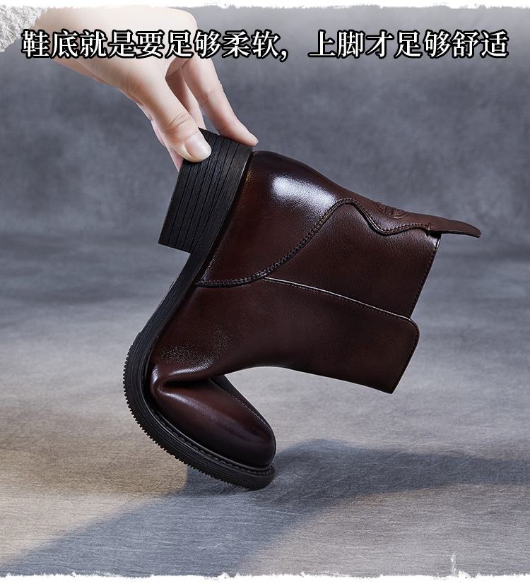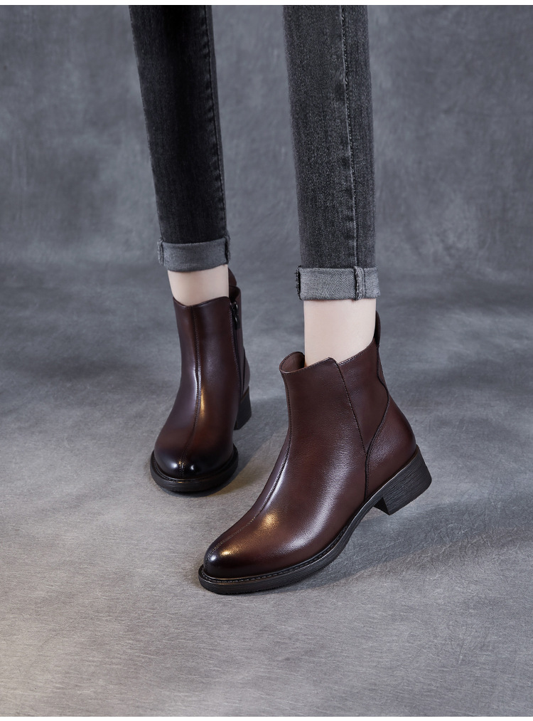정품 가죽 빈티지 굵은 뒤꿈치 2024 가을 첼시 발목 부츠 탑 레이어 Cowhide 영국 라운드 발가락 마틴 부츠 다크 브라운 여성용 부츠스토어 가기