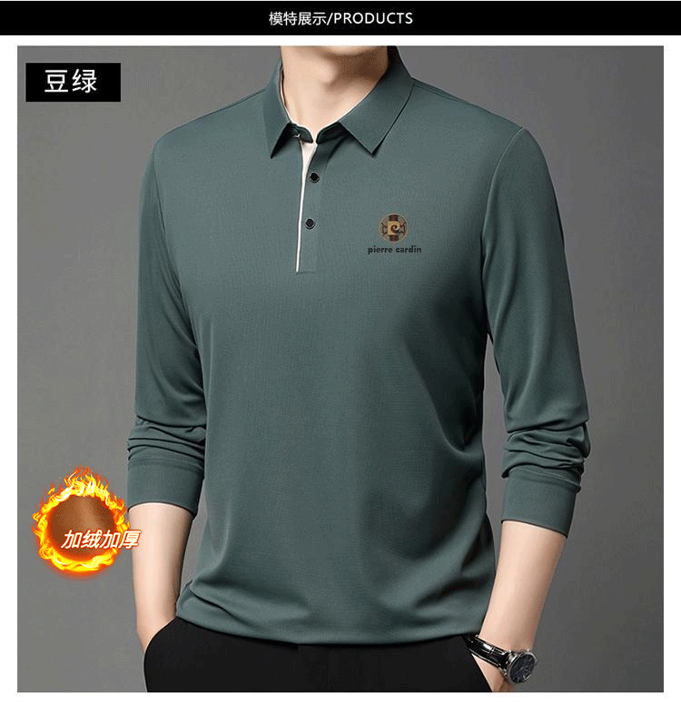 2024 봄과 가을 남성 긴팔 티셔츠 단색 옷깃 폴로 셔츠 남성 코트 흔들며 소리 폭발 도매스토어 가기