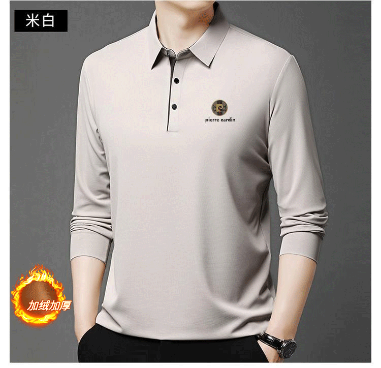 2024 봄과 가을 남성 긴팔 티셔츠 단색 옷깃 폴로 셔츠 남성 코트 흔들며 소리 폭발 도매