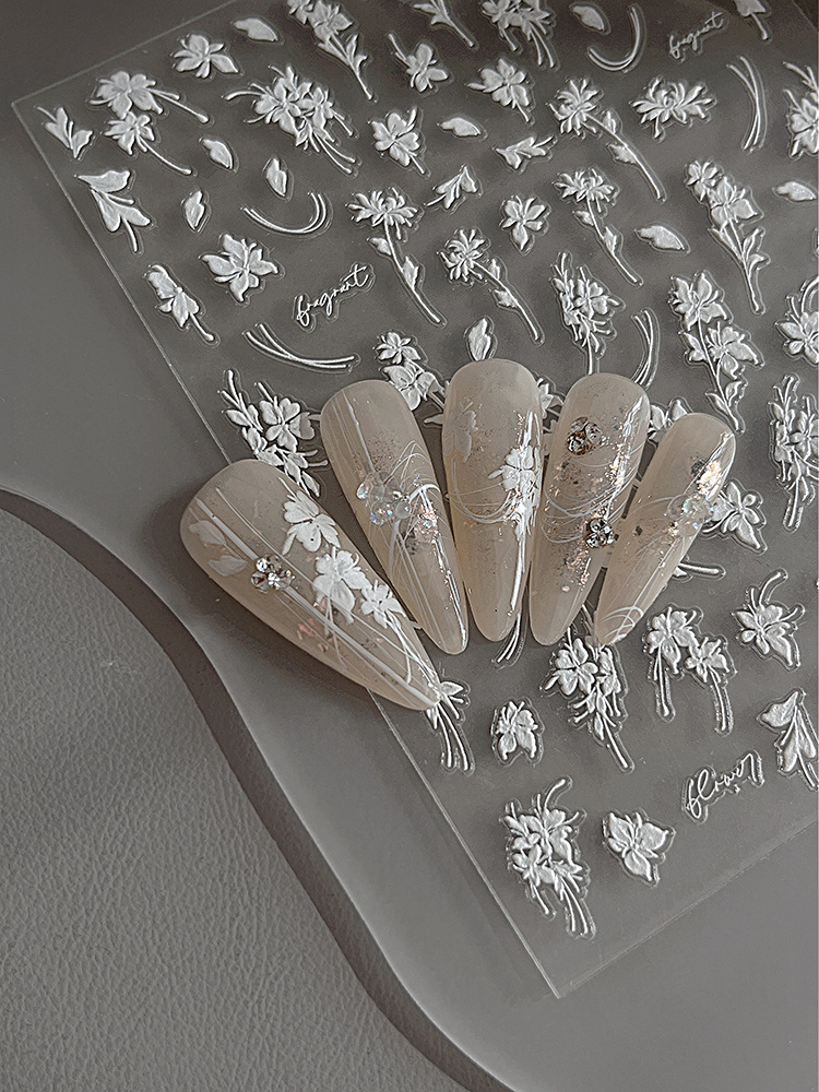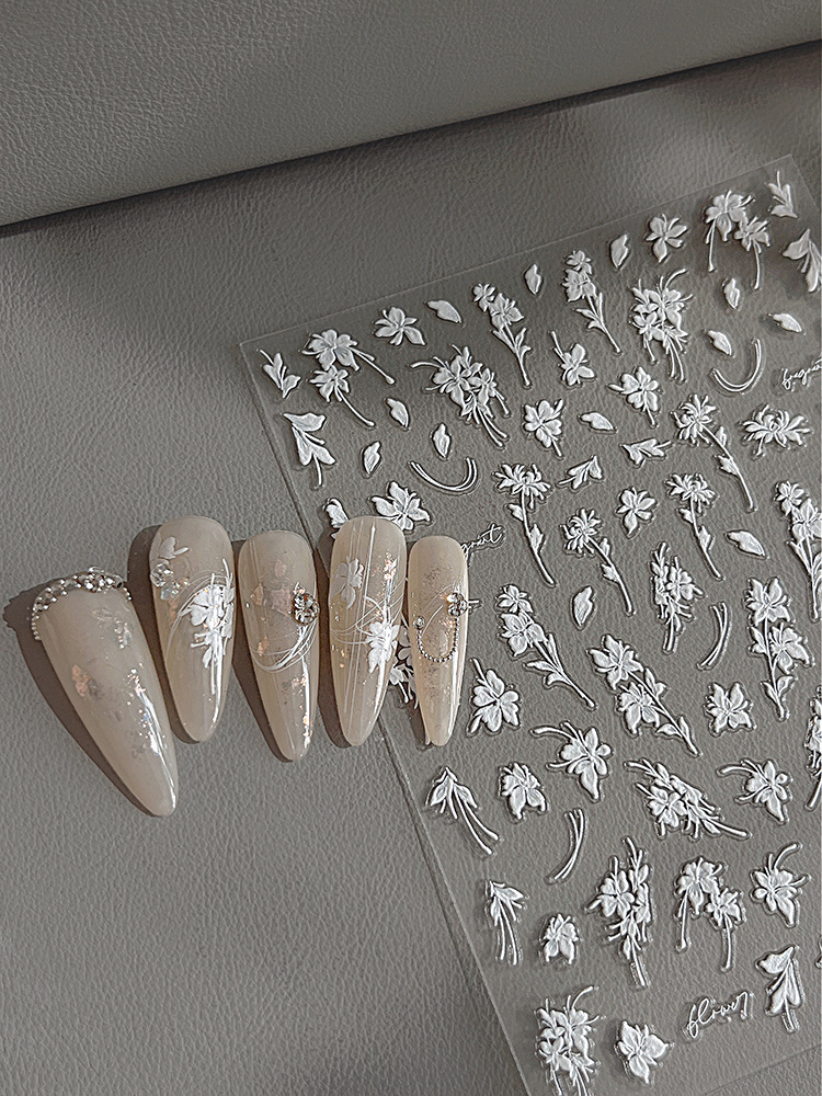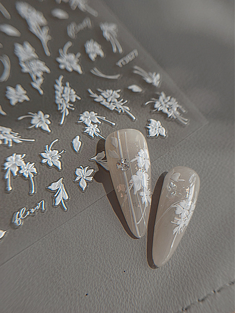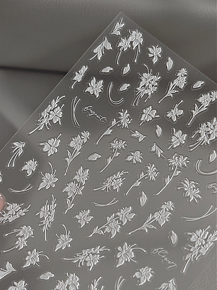 YITU 개미 그림 손으로 그린 흰 꽃 눈 깎기 잔디 매니큐어 스티커 종이 벨트 접착 릴리프 네일 장식 스티커 YT3877스토어 가기