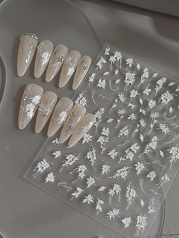YITU 개미 그림 손으로 그린 흰 꽃 눈 깎기 잔디 매니큐어 스티커 종이 벨트 접착 릴리프 네일 장식 스티커 YT3877