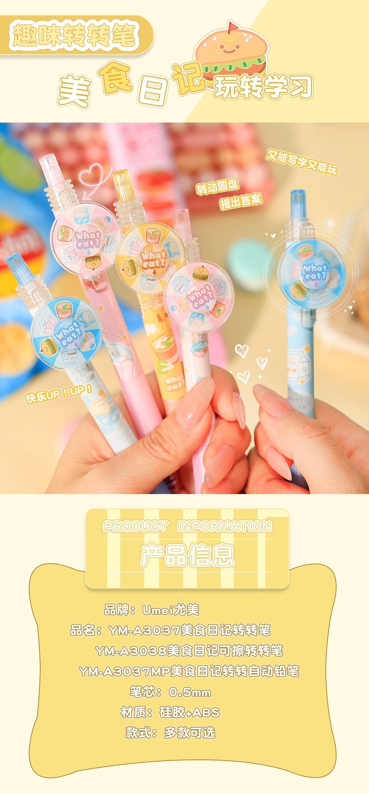Youmei 3037MP 음식 일기 턴어라운드 음악 기계 연필 재미와 재미있는 학생 쓰기 및 그리기 활동 연필스토어 가기