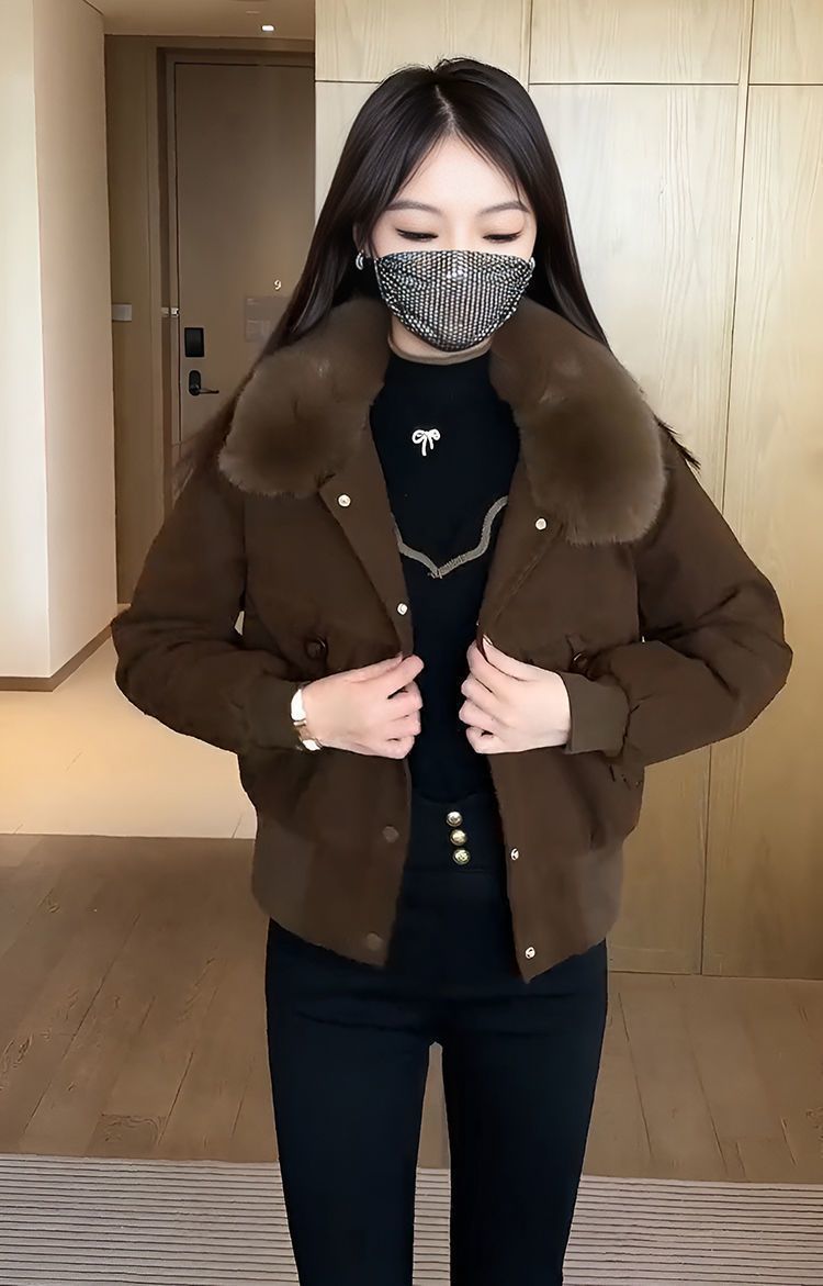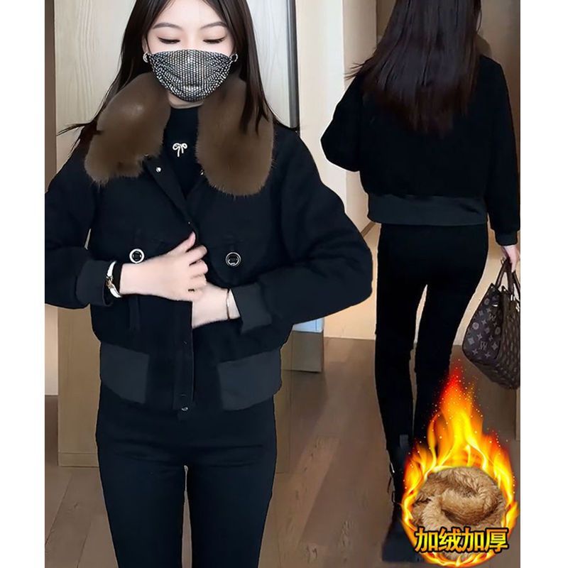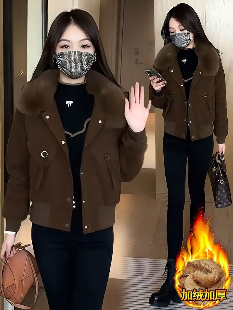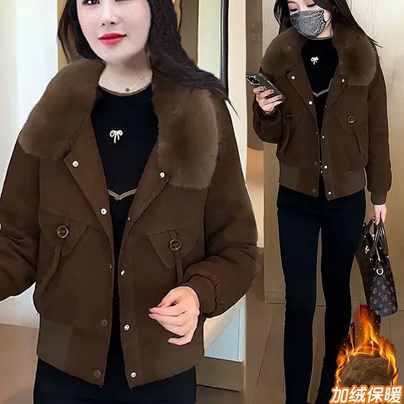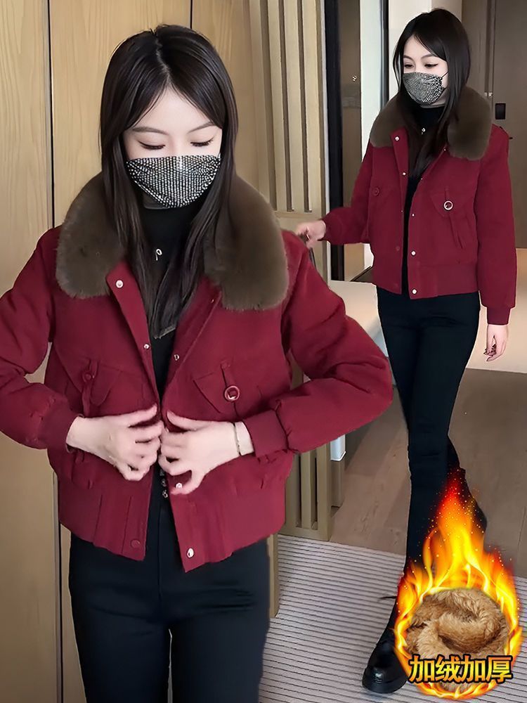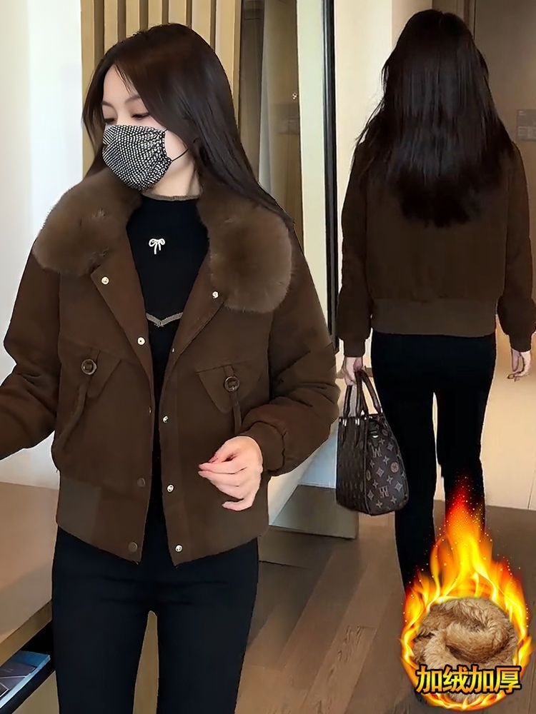 기모 두꺼운 쇼트 코트 여성의 2024 겨울 새로운 패션 슬리밍 모피 칼라 재킷 세련된 올 매치 코튼 패딩 의류 트렌디스토어 가기