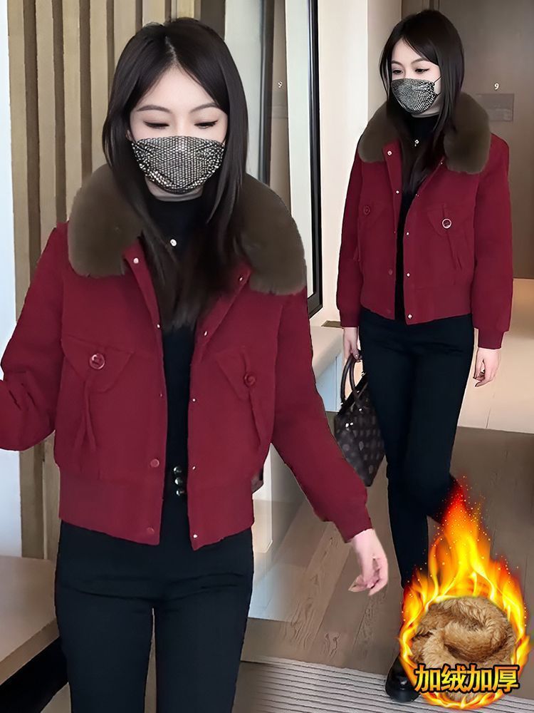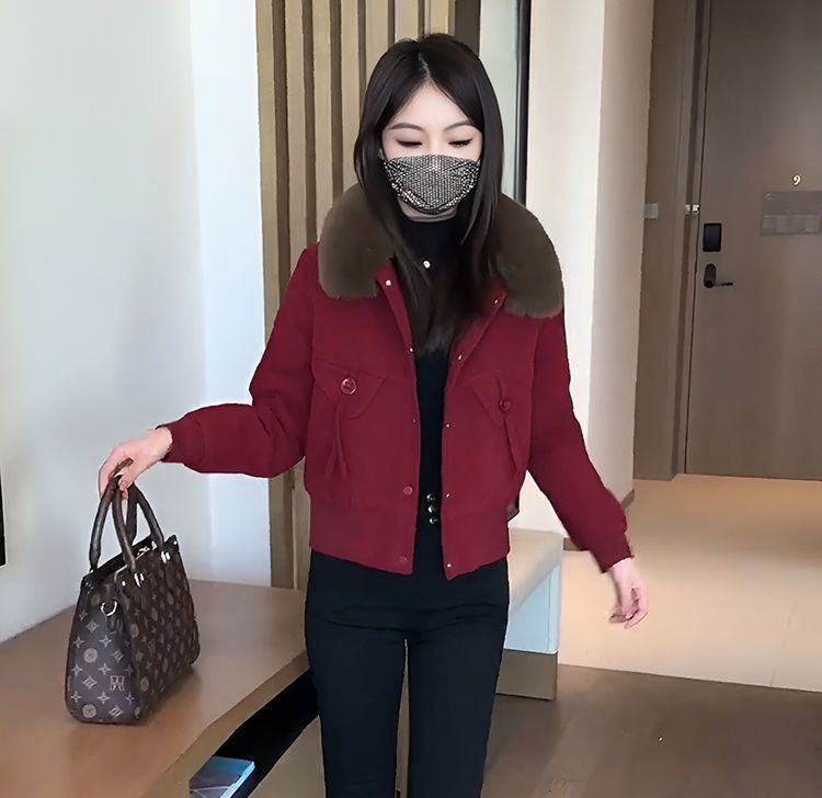 기모 두꺼운 쇼트 코트 여성의 2024 겨울 새로운 패션 슬리밍 모피 칼라 재킷 세련된 올 매치 코튼 패딩 의류 트렌디