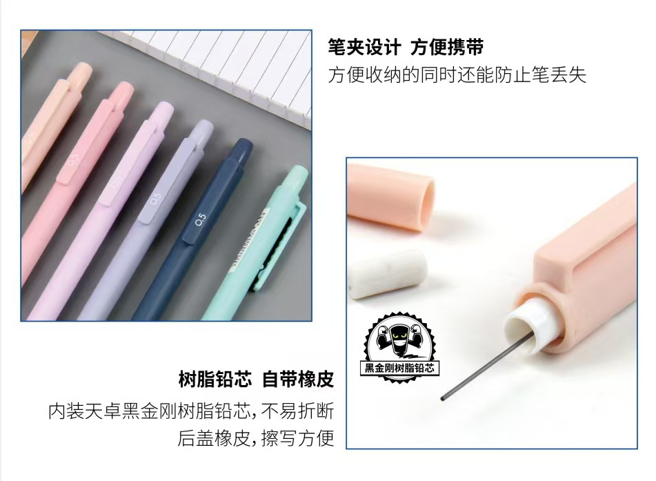 Tianzhuo Macaron 솔리드 컬러 기계 연필 0.50.7mm 프레스 활동 연필 학생들은 높은 컬러 삼각형로드스토어 가기