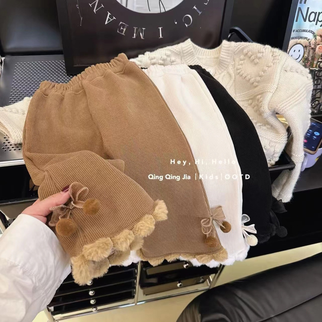 새로운 기모 소녀 레깅스 걸즈 한국 아기 가을 겨울 두꺼운 넓은 다리 바지 따뜻한 봉제 바지