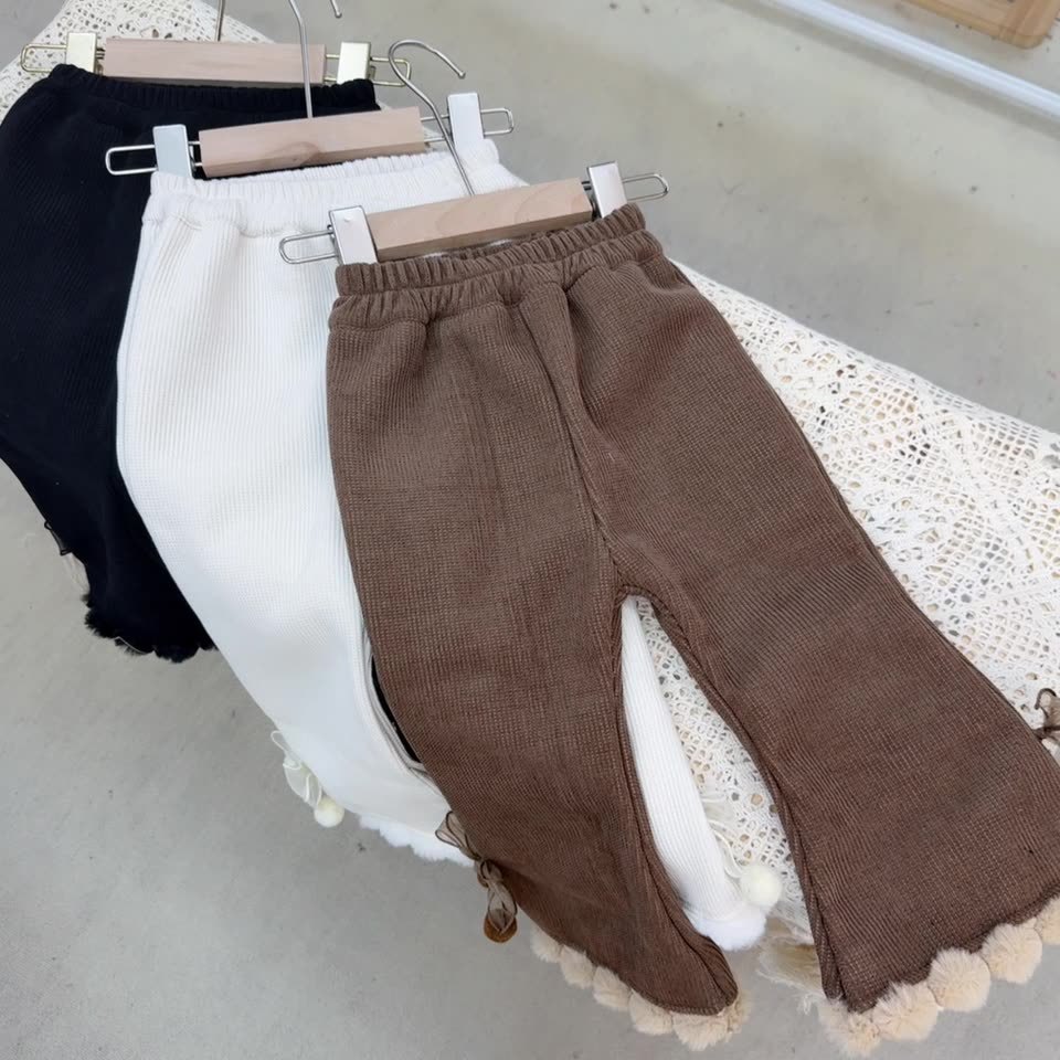 새로운 기모 소녀 레깅스 걸즈 한국 아기 가을 겨울 두꺼운 넓은 다리 바지 따뜻한 봉제 바지스토어 가기